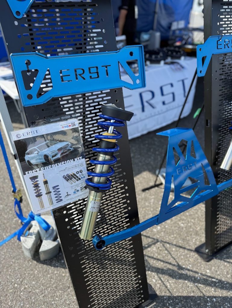 ERSTさんブースにはデモカー以外にもブレーキキットやスペーサー、補強パーツ、サスペンションなど様々なカスタマイズパーツが展示されていましたので、見ているだけで楽しくなってしまう素敵なブースでした。