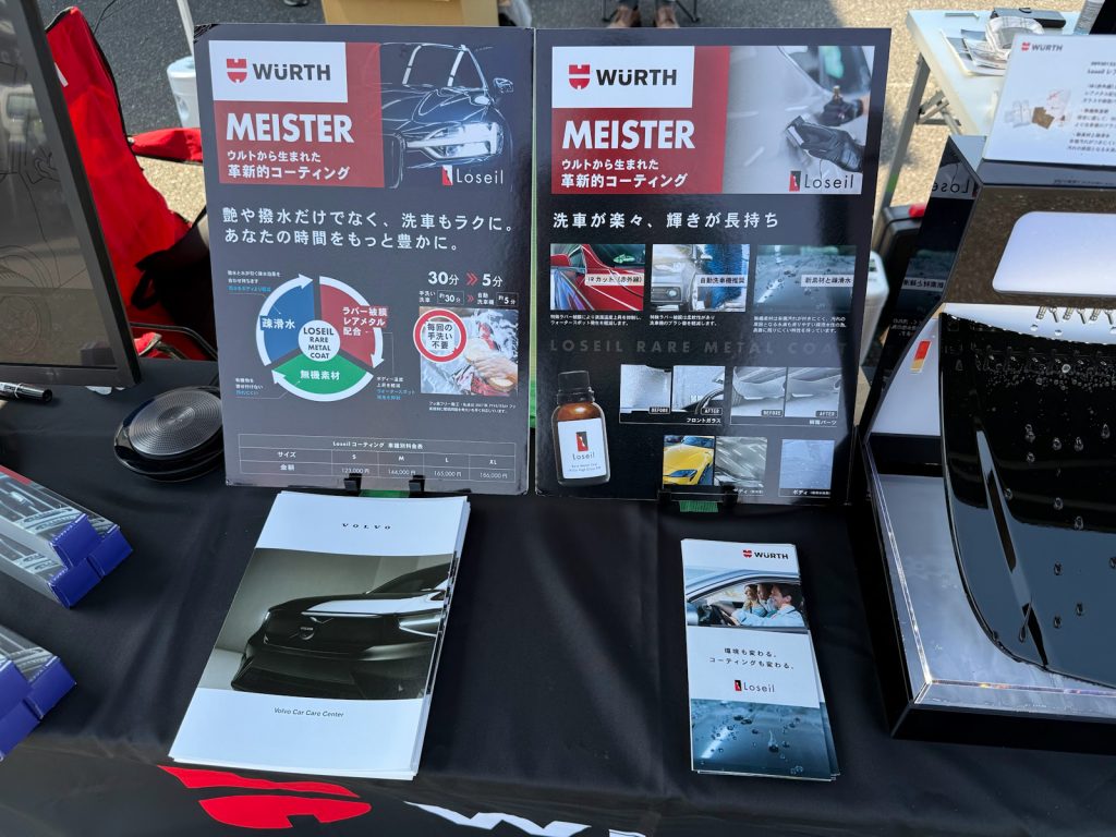 自社施工のコーティングデモカー、ボルボV40が展示されていました。