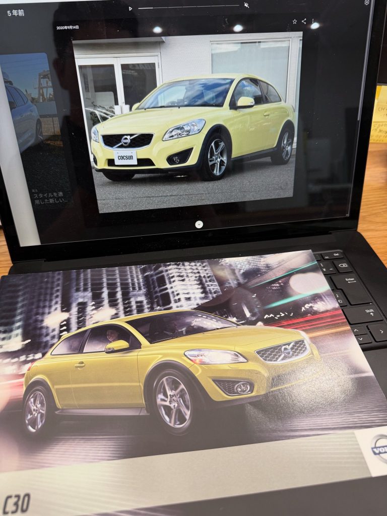 パソコン画面を開くとGoogleフォトから、5年前の昨日撮影した、ボルボC30ハローイエローの写真が出てきました。