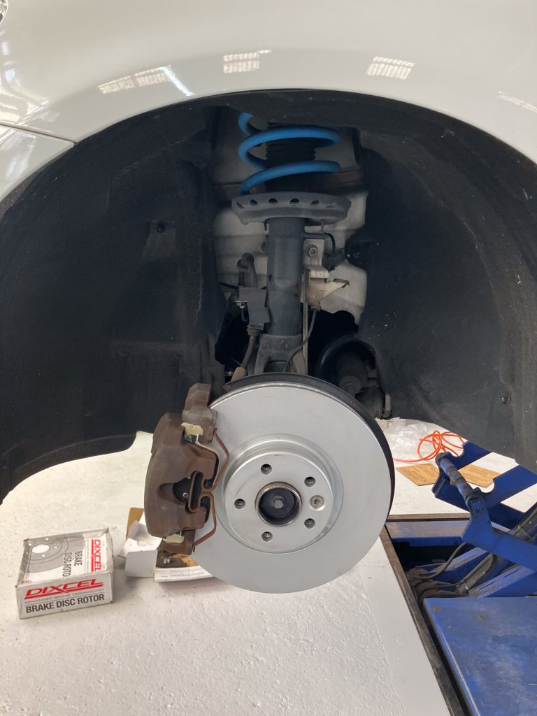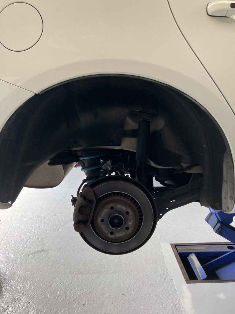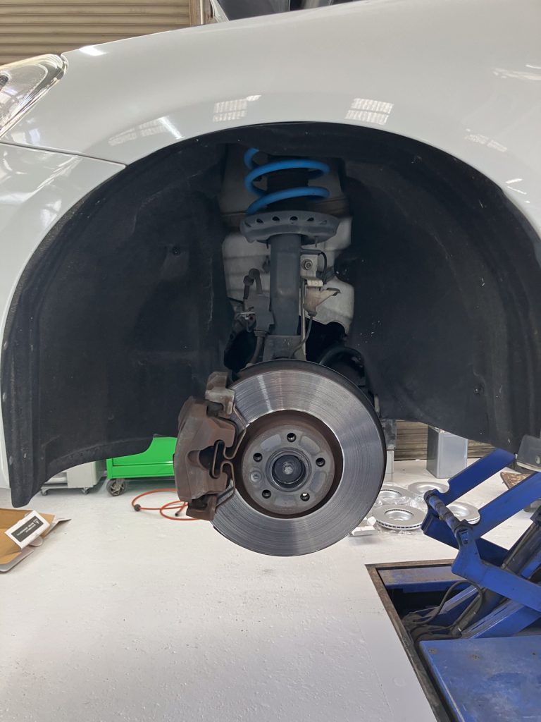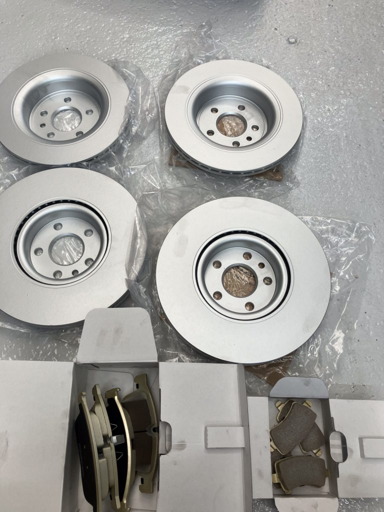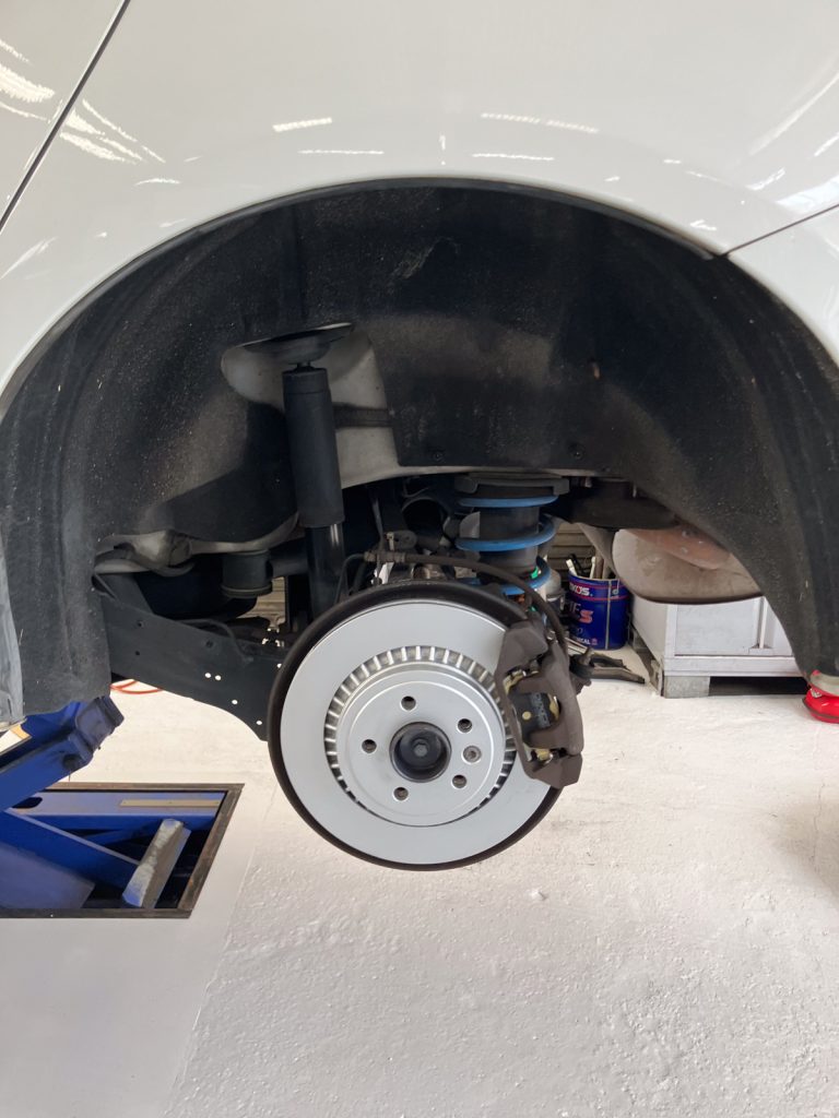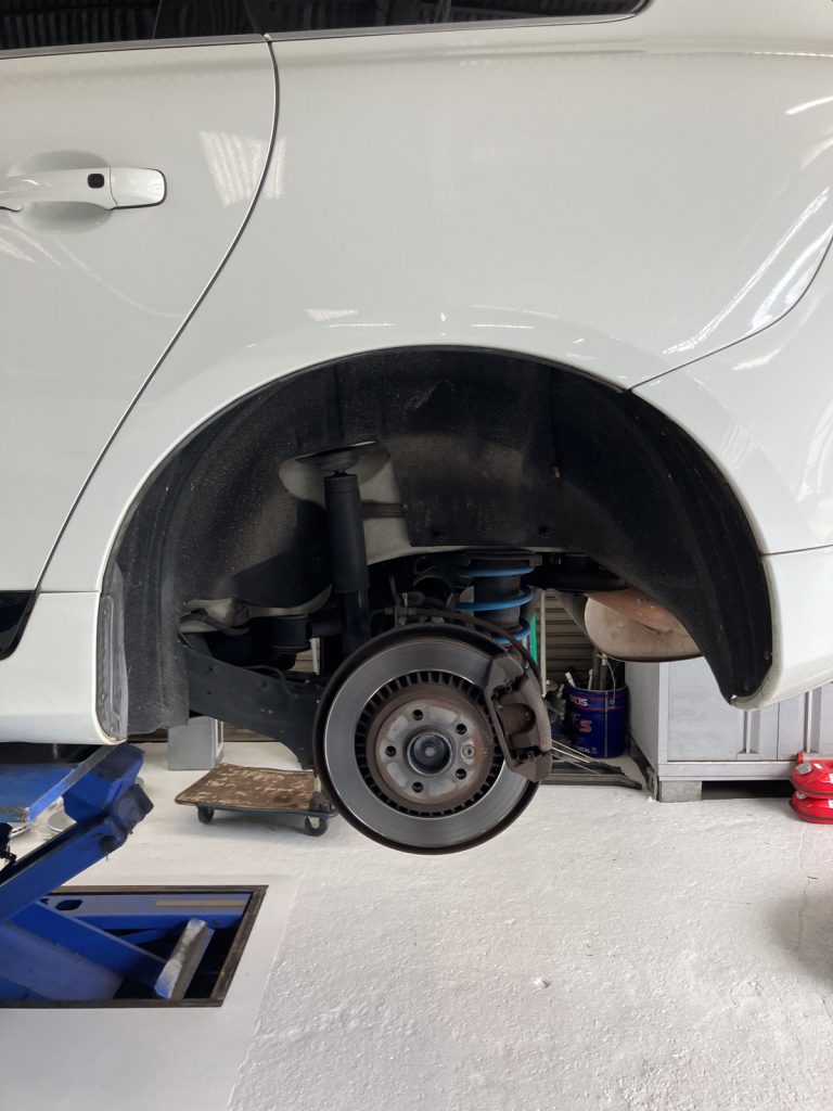 フロントとリアの、ブレーキディスク&ブレーキパッド一式の新品交換作業をご用命いただきました。