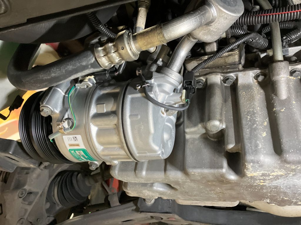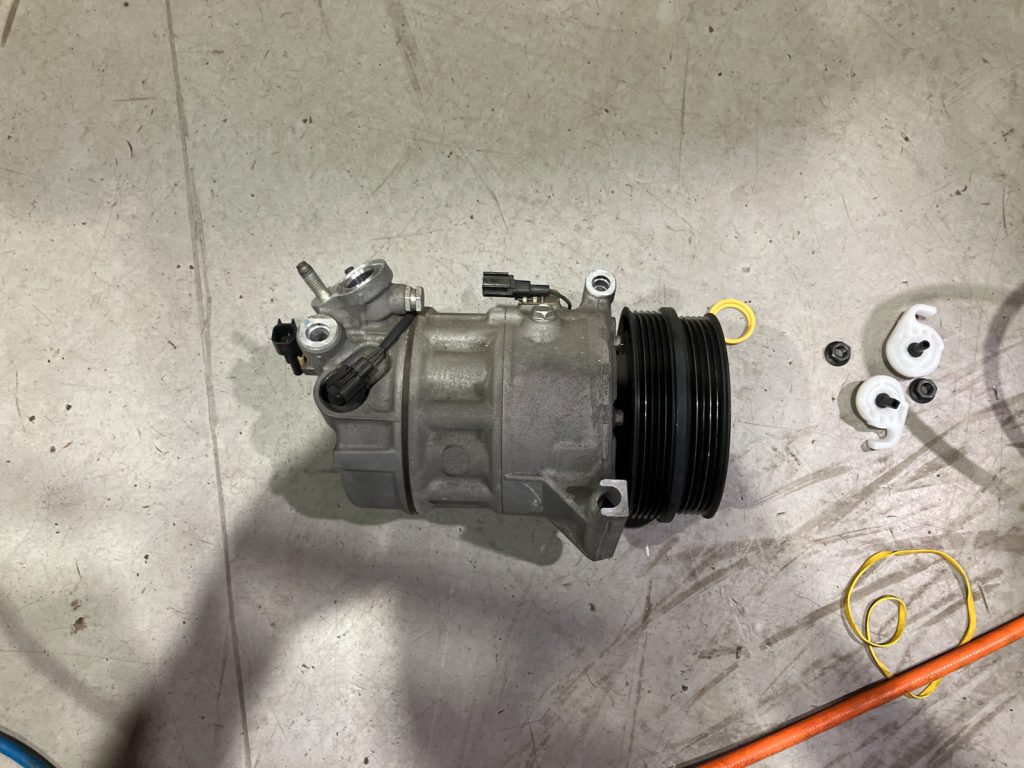 今回はエアコンコンプレッサーを新品交換、エアコンガスの真空引き・充填、Oリング一式交換作業を実施させていただきました。
