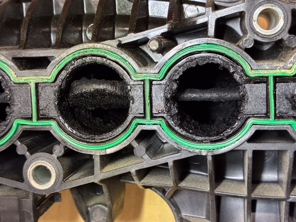 排気再循環装置(EGR)内部の煤を除去し、流量と冷却性能を回復しました。EGRクーラー関連のガスケットとOリングも同時に交換しています。