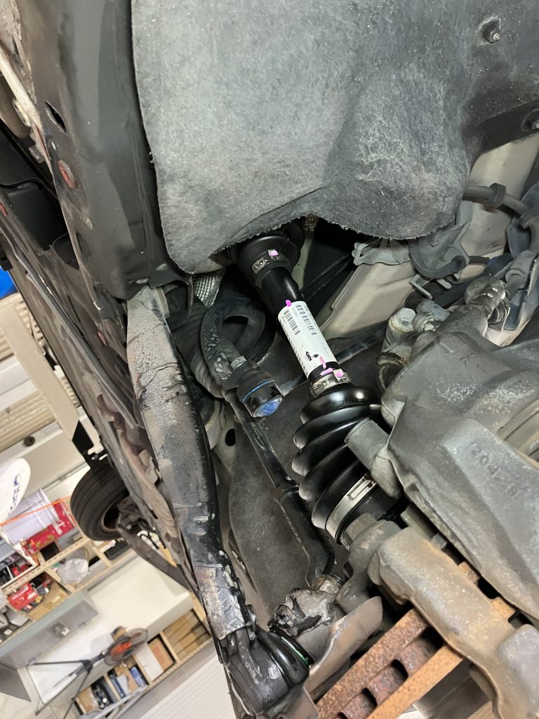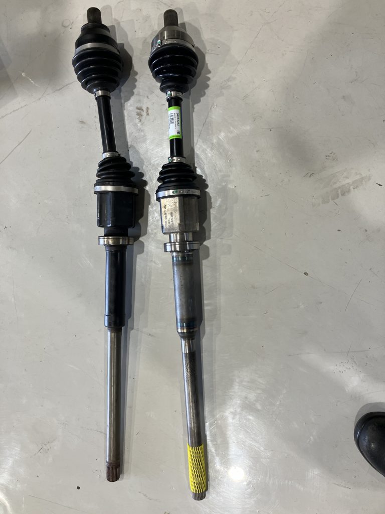 フロント左右ドライブシャフトブーツ交換とあわせて、アクスルシャフト左右の交換も実施しました。