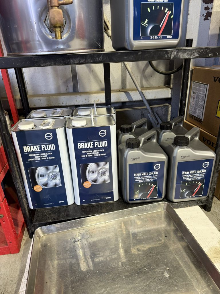 ボルボのメンテナンス当店で使用していますブレーキフルード、冷却水はボルボ純正品です。