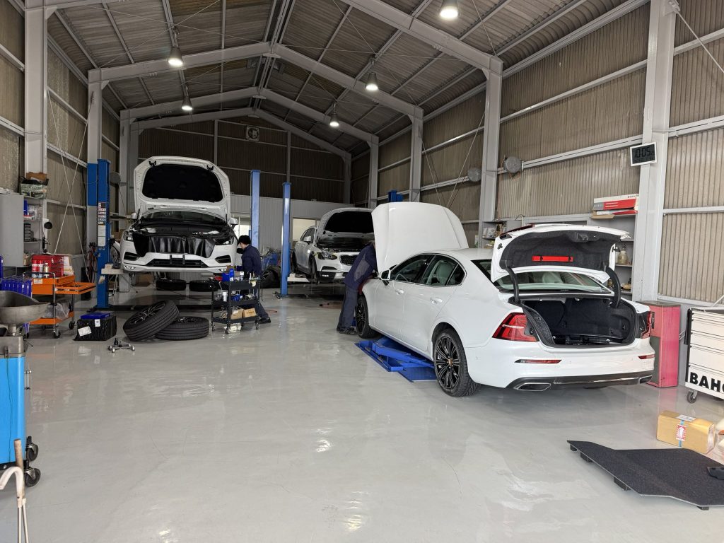 ボルボのメンテナンスご契約の納車前整備中車両。