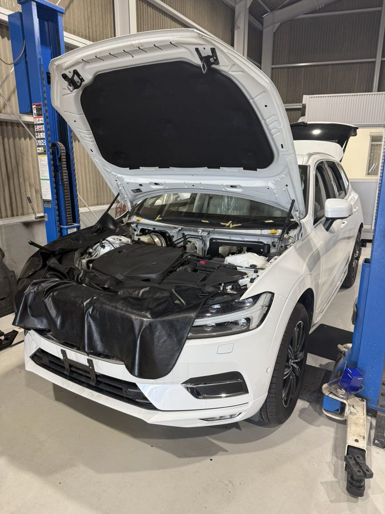 - 納車前整備中のXC60。