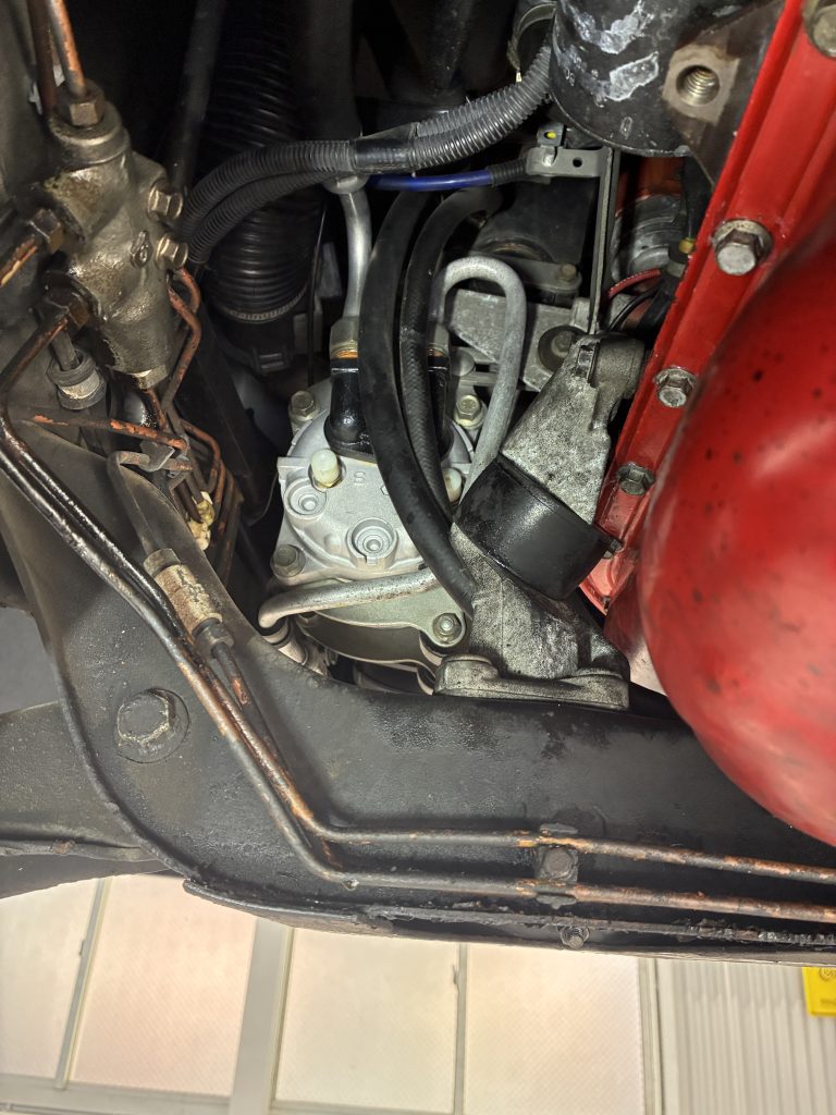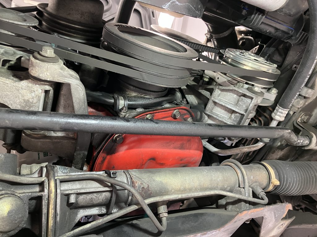 あわせてパワーステアリングホースを脱着し、関連ガスケットも交換しています。