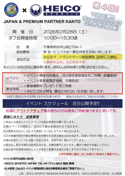 - 2月28日にボルボオーナーズクラブのELK関東様主催のボルボオフ会が開催されます!