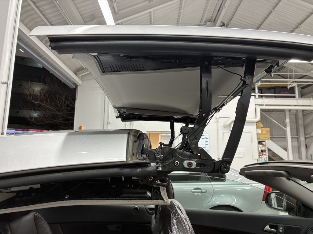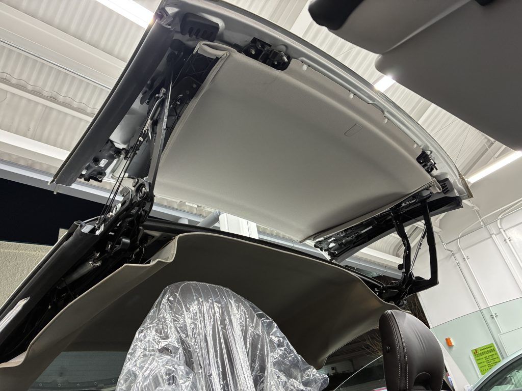 今回ご入庫いただいたのは美しいハードトップを持つボルボC70 。 年数が経過したモデルでよく見られるお悩みの一つが、天井の内張(ヘッドライニング)の垂れや剥がれです。特にオープンモデルであるC70は屋根の開閉機構を持つため、内装のメンテナンスには専門的な知識が必要となります 。