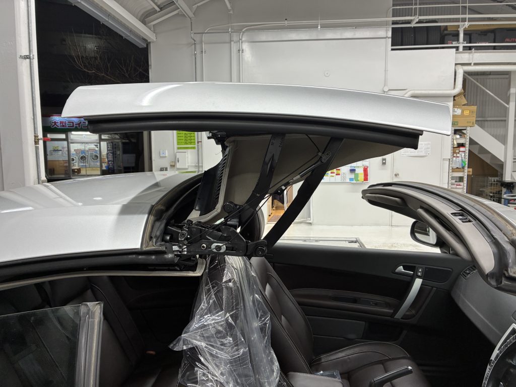 雑な開閉構造を持つC70の内装作業は慎重な取り回しが求められる難易度の高い整備ですが細部まで丁寧に仕上げております 。