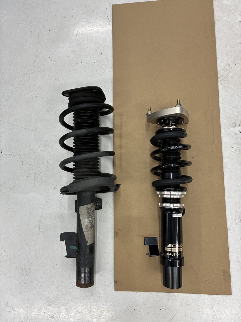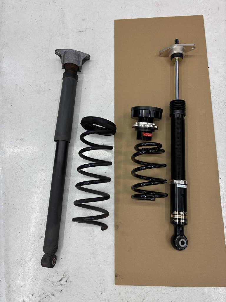 メイン作業として高性能なサスペンションとして定評のあるBCレーシング製の車高調整式サスペンションキットを装着しました 。
