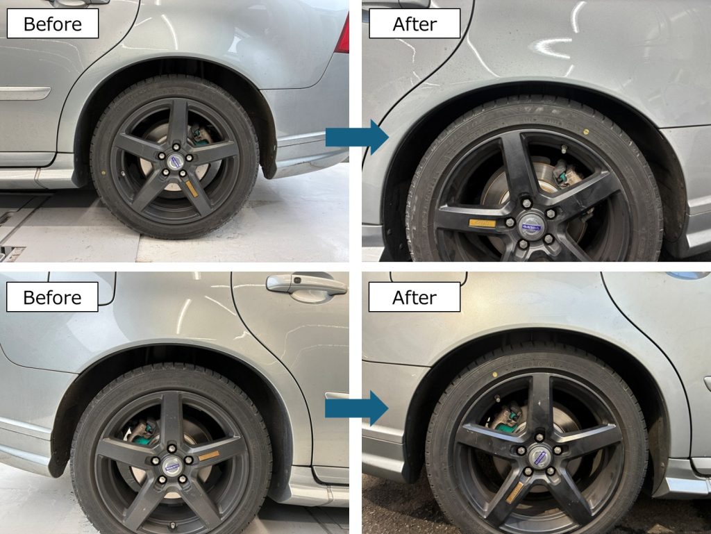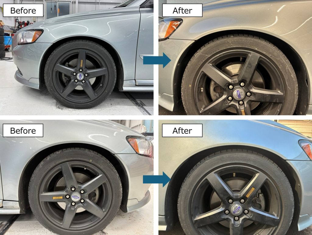 同時作業に駆動系のメンテナンスとして左ドライブシャフトの交換も実施し、足回りの不安を解消しました 。今回の作業もボルボの足回り整備に精通したメカニックが担当し、正確な組み付けと微調整を行っております 。