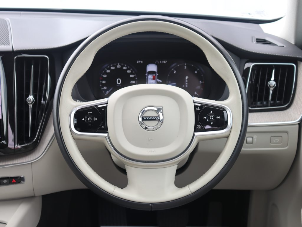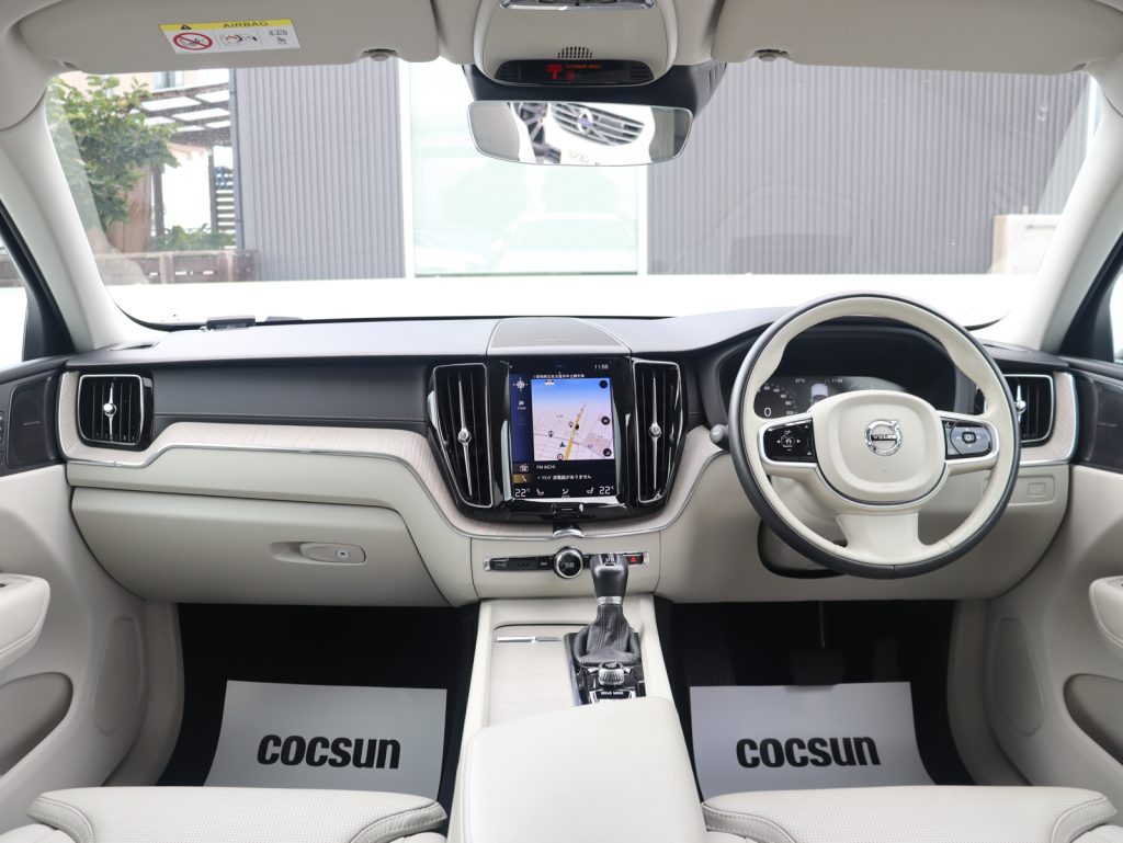 クリスタルホワイトパールのボディカラーが北欧車らしいクリーンで洗練された印象を与えてくれます。また組み合わされる内装色はブロンドカラー(明るいオフホワイトカラー)となり、開放感のある車内空間となっています。