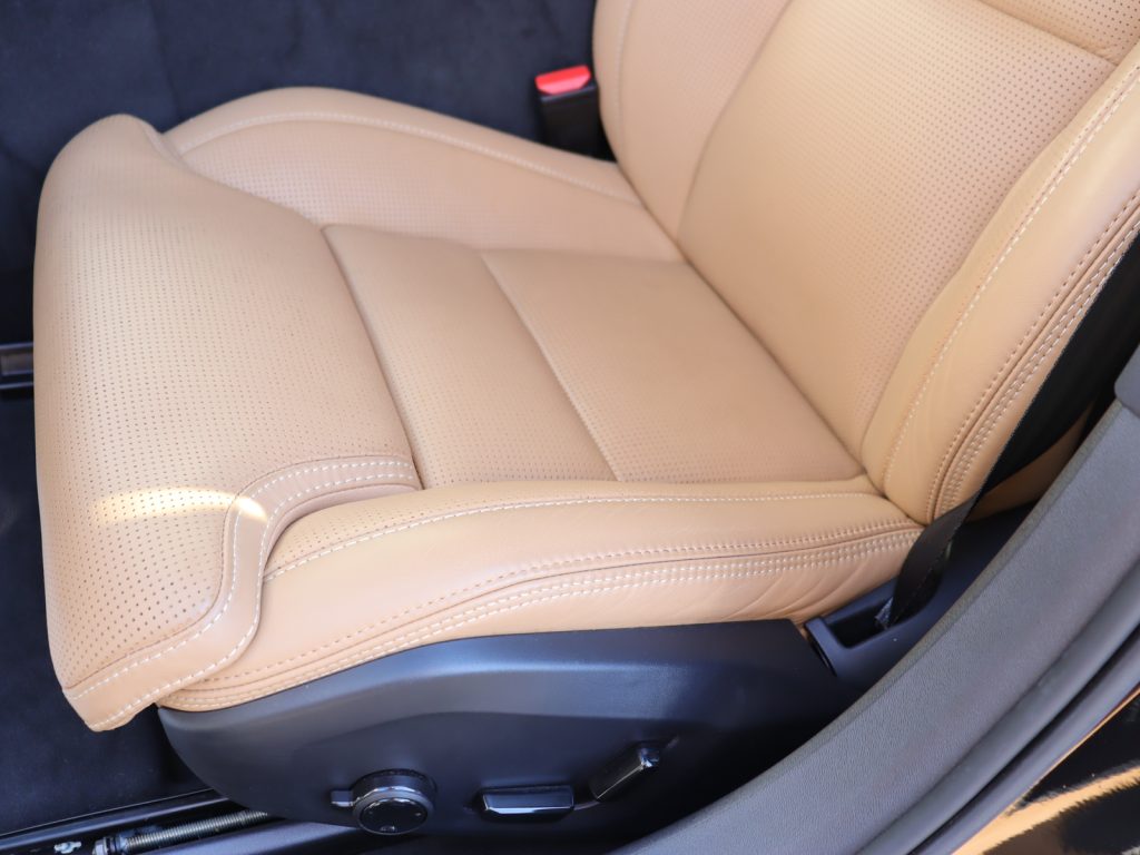 インテリアには、柔らかくしなやかな質感のパーフォレーテッド・ファインナッパレザーシートを採用。