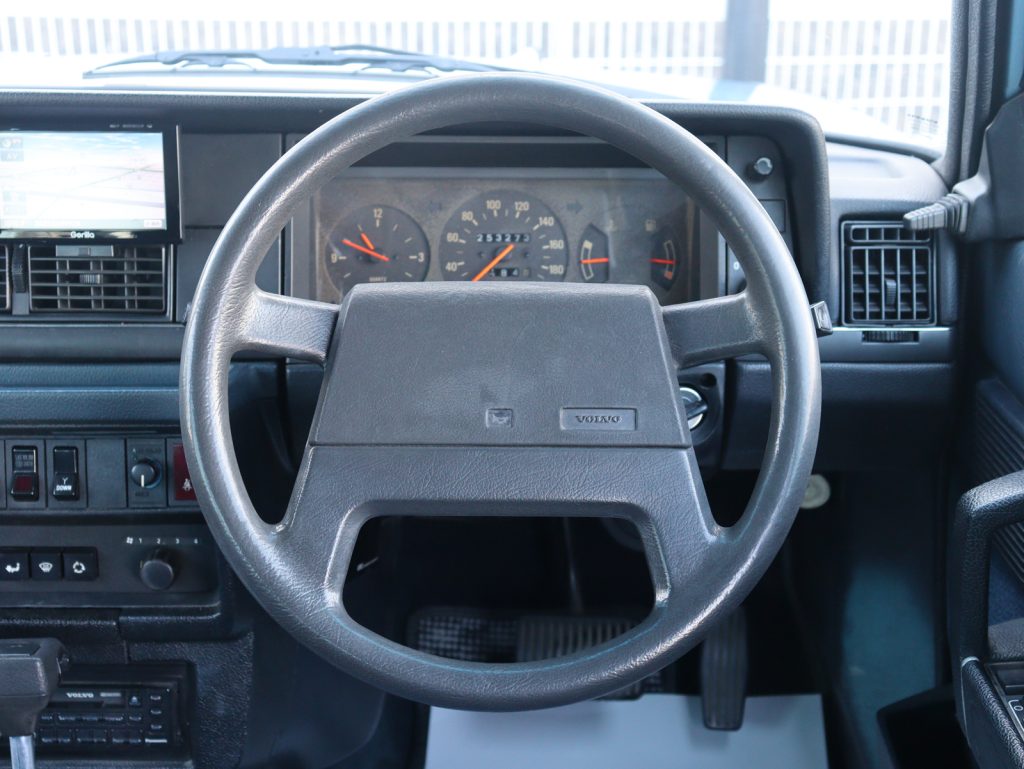 走行距離は253,300km。ボディカラーは当時の雰囲気を色濃く残す純正モナコブルーで、クラシックボルボらしい存在感をしっかりと感じられる一台です。