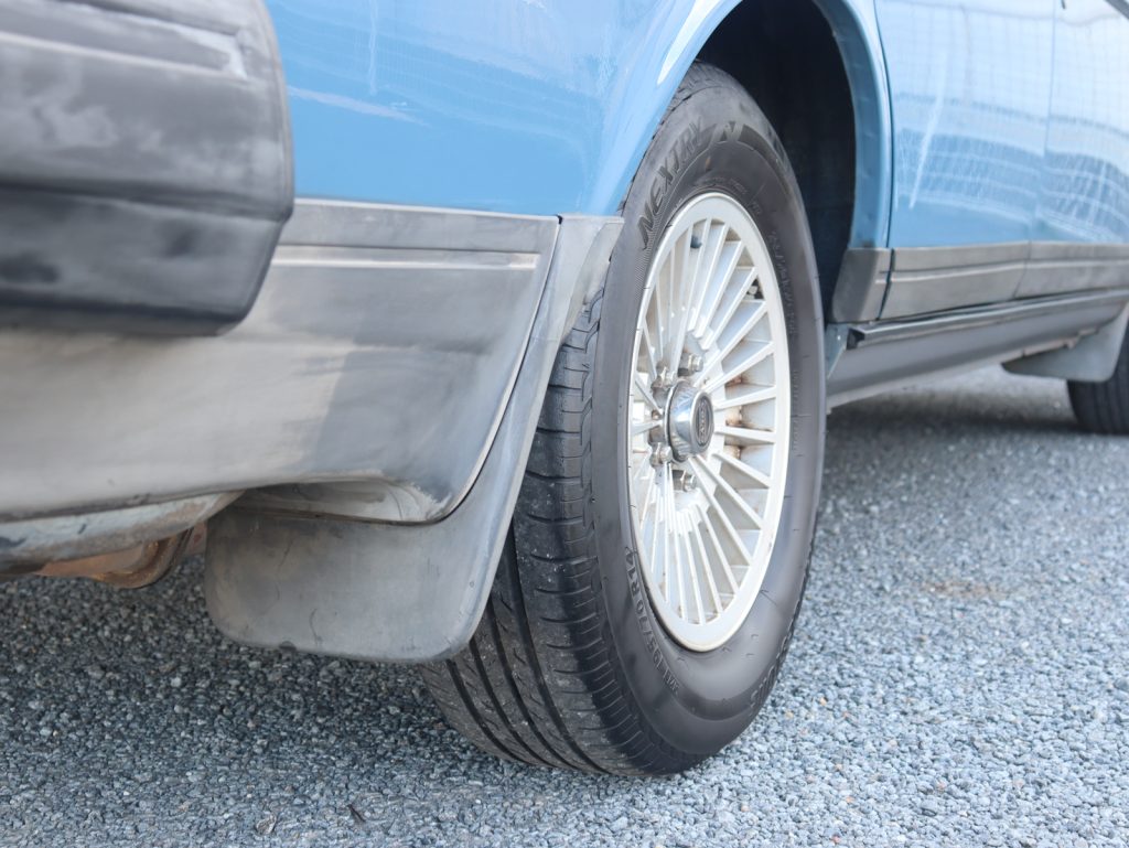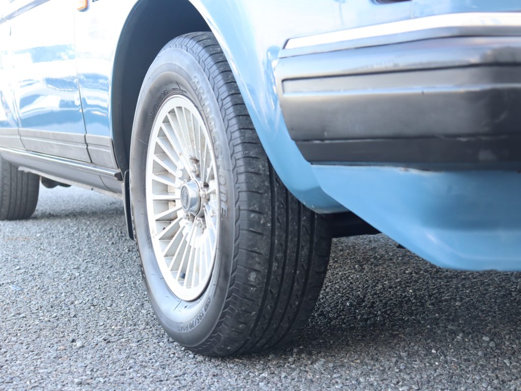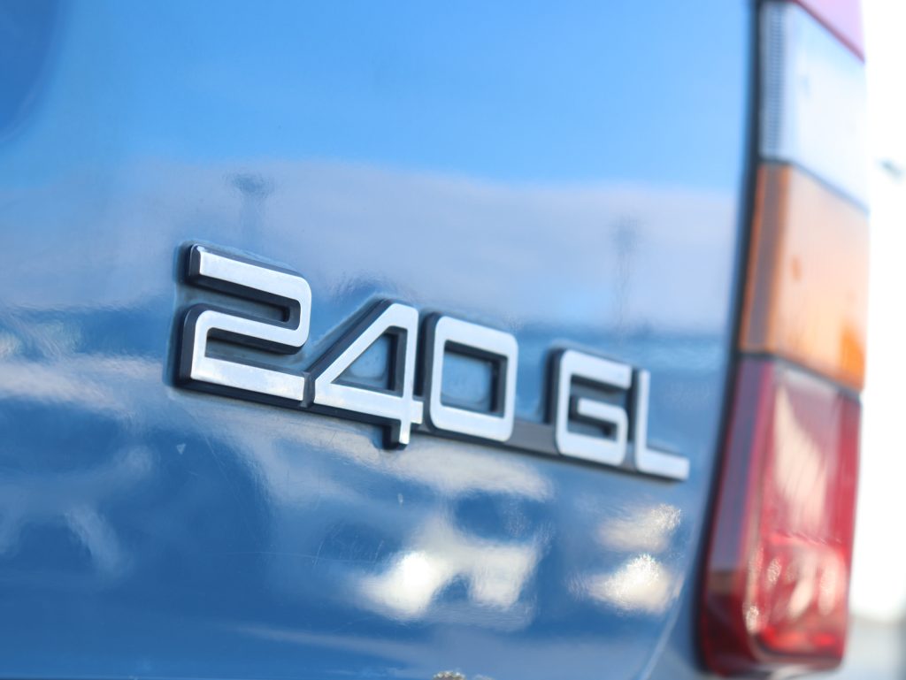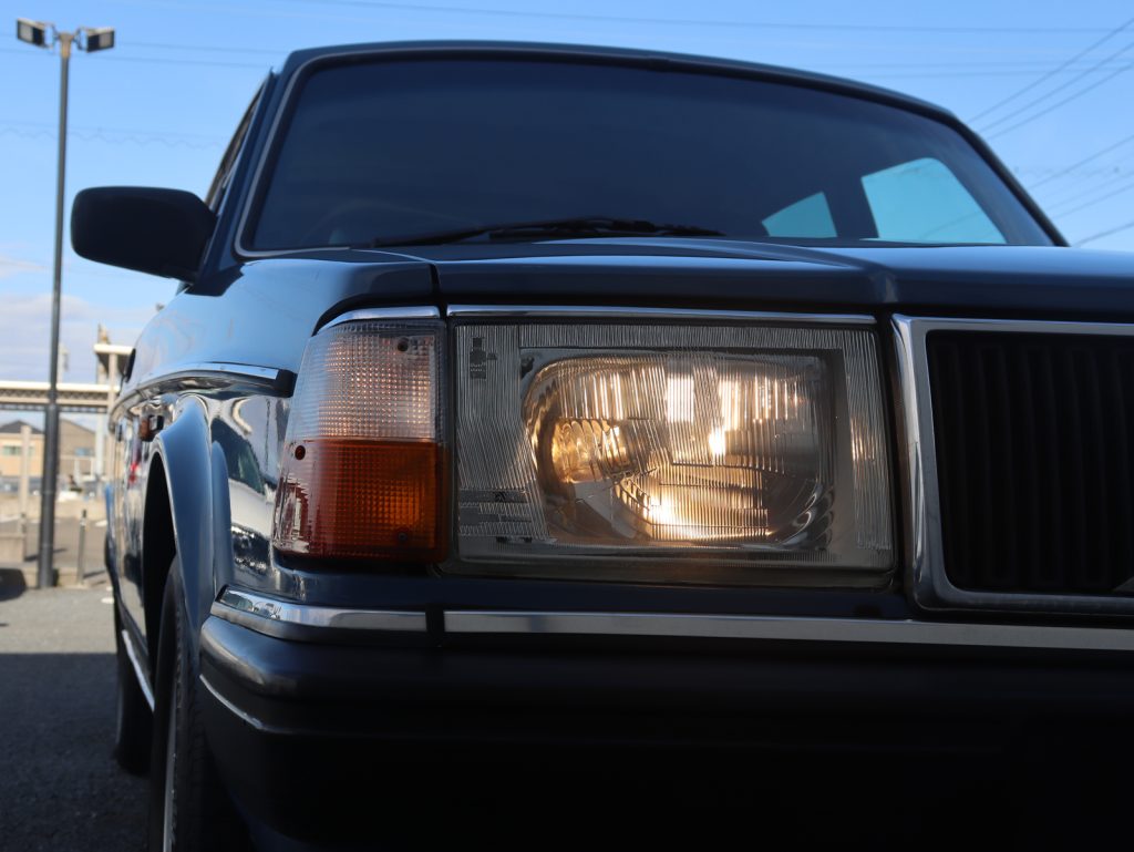 前期型240ワゴンの特徴の一つであるスモールウィンドウ仕様が採用され、端正でスクエアなプロポーションをより引き立てています。