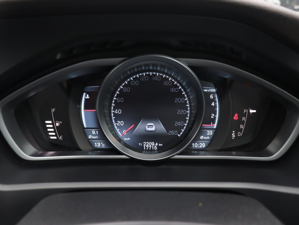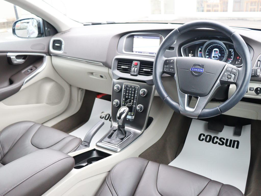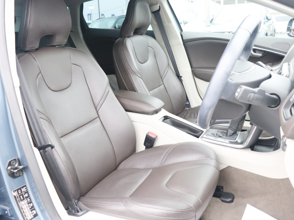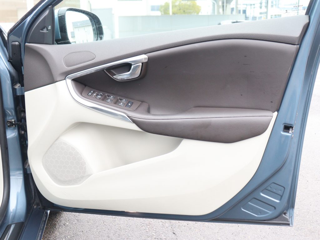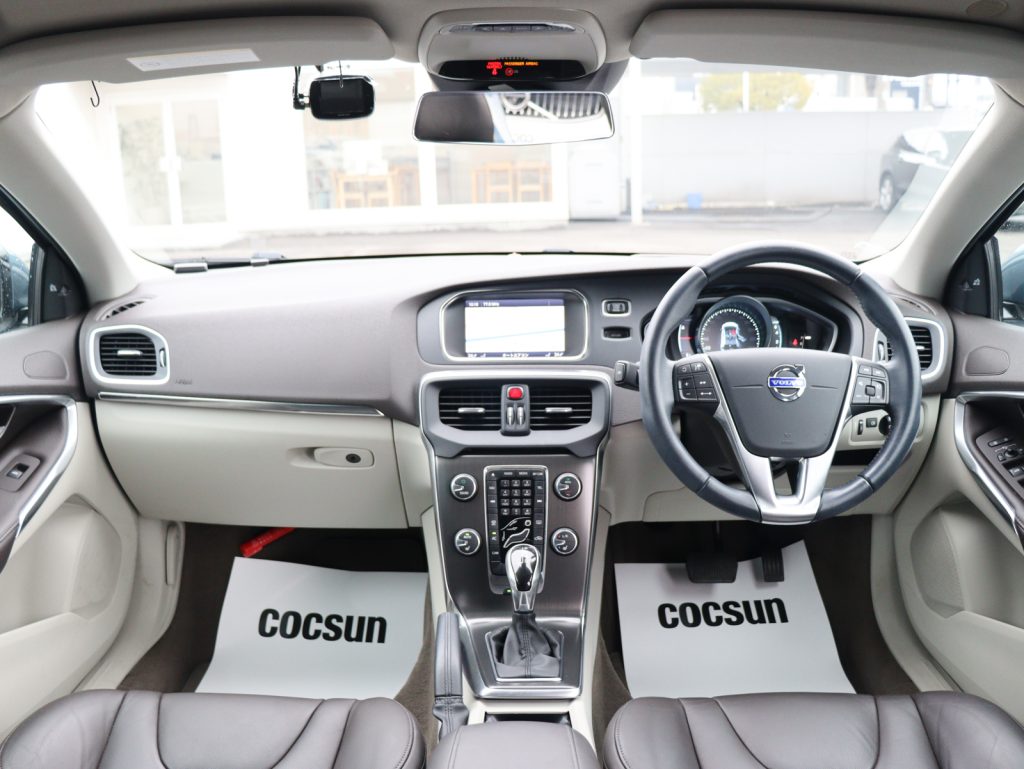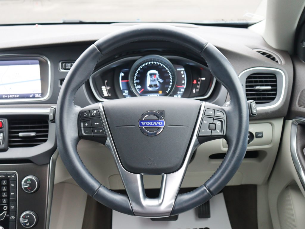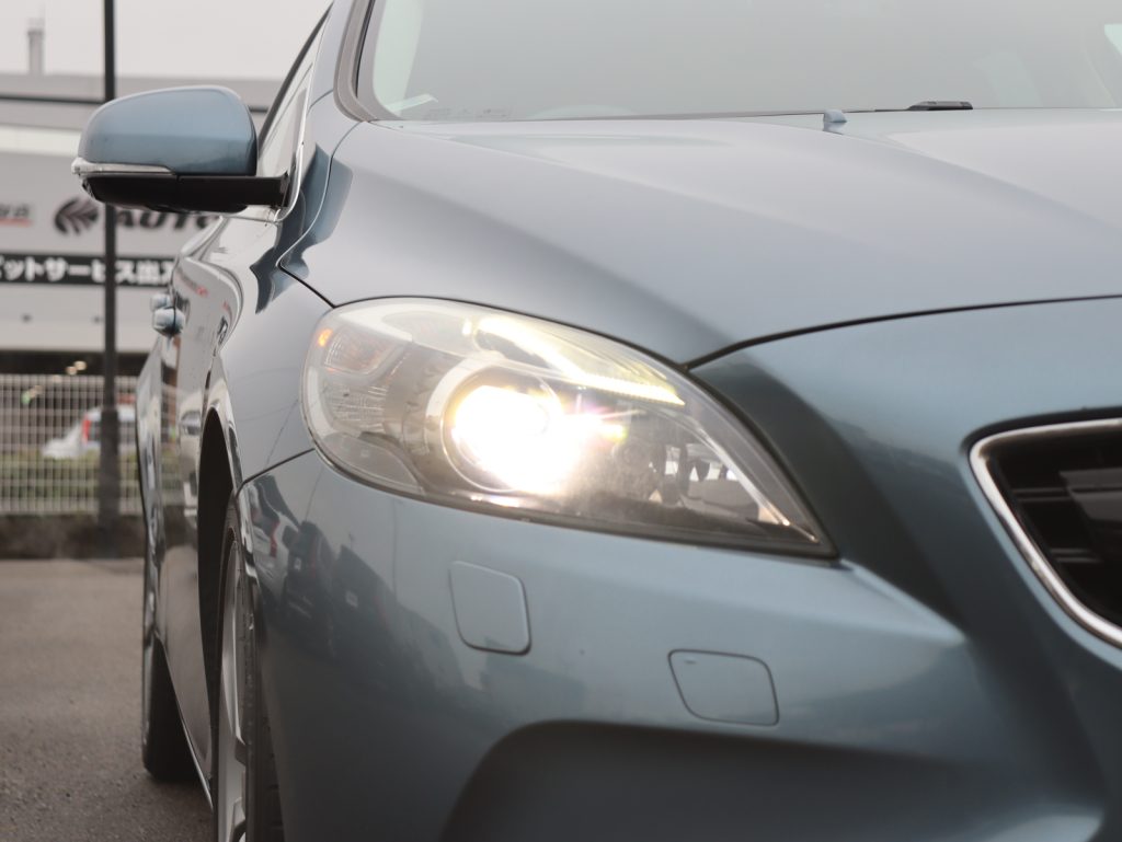 ボディカラーは深みと艶のあるビアリッツブルーメタリックで、V40のコンパクトで引き締まったボディラインを上品に引き立てています。