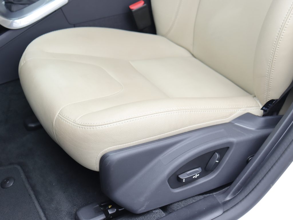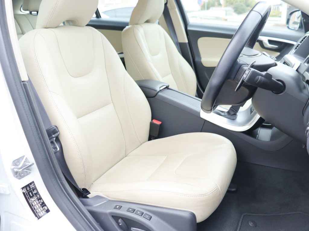 室内には明るく落ち着いた印象のソフトベージュ本革シートを採用し、パワーシートとシートヒーターを備えることで、快適なドライビングポジションと居心地の良い空間を実現しています。