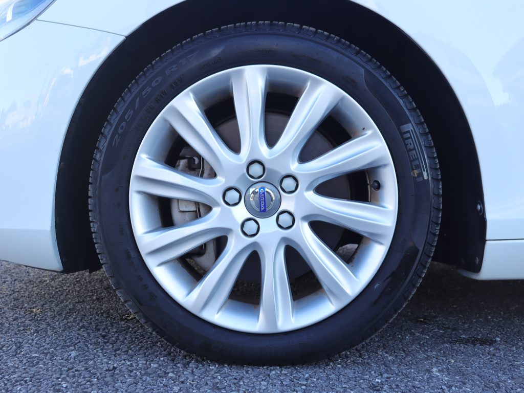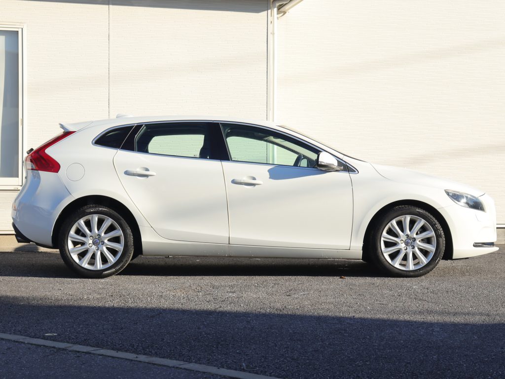 ボディカラーは清潔感のあるアイスホワイトで、V40のコンパクトで洗練されたデザインを爽やかに引き立てています。