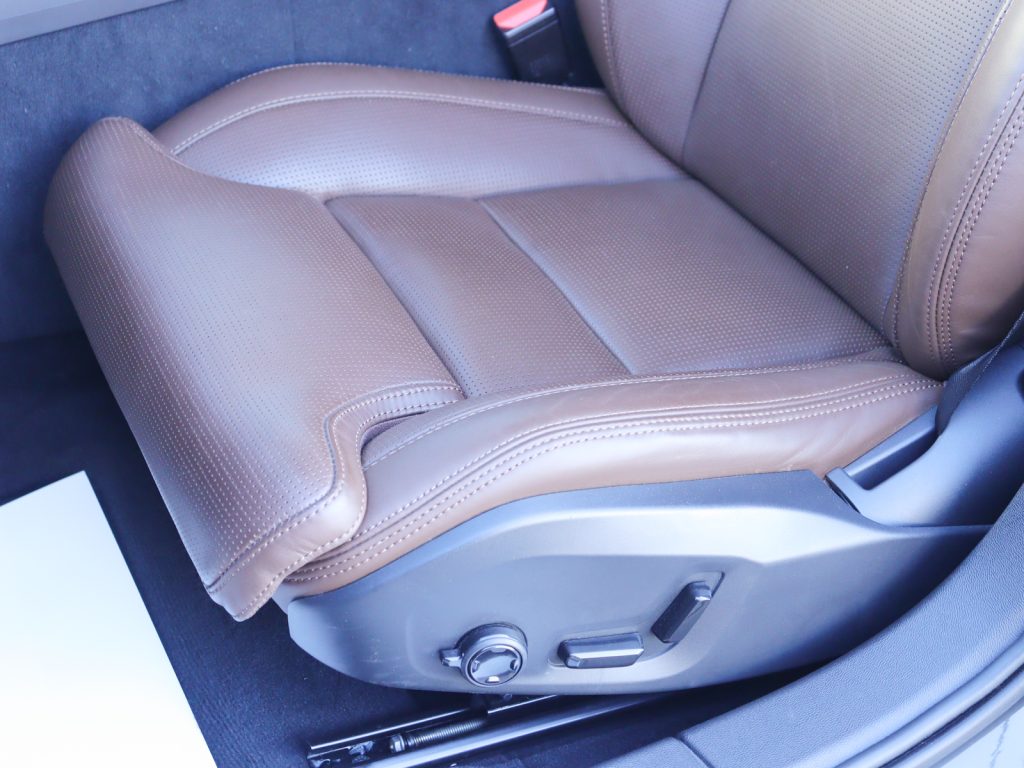室内にはマルーンブラウンのパーフォレーテッドファインナッパレザーシートを採用し、落ち着きと高級感を兼ね備えた上質な空間に仕上げられています。