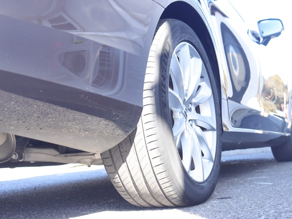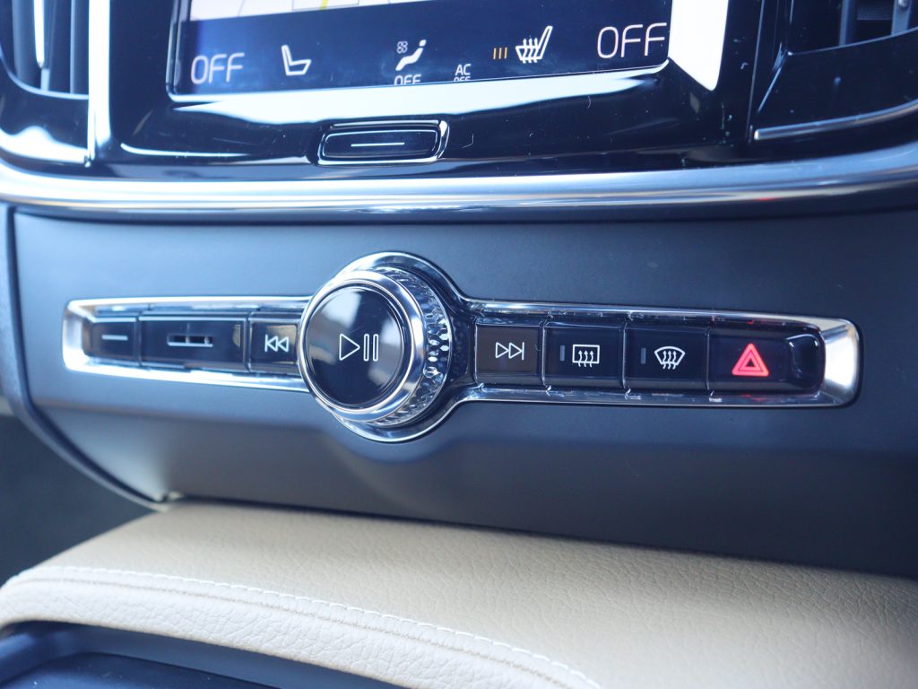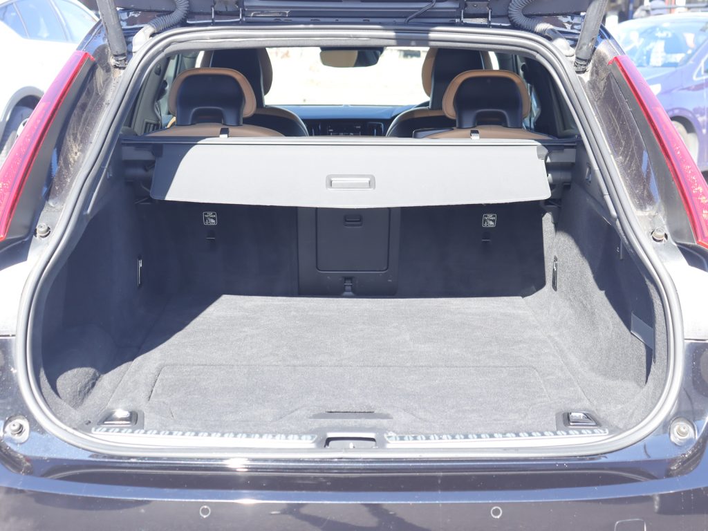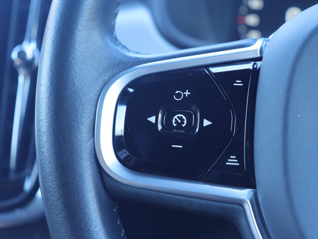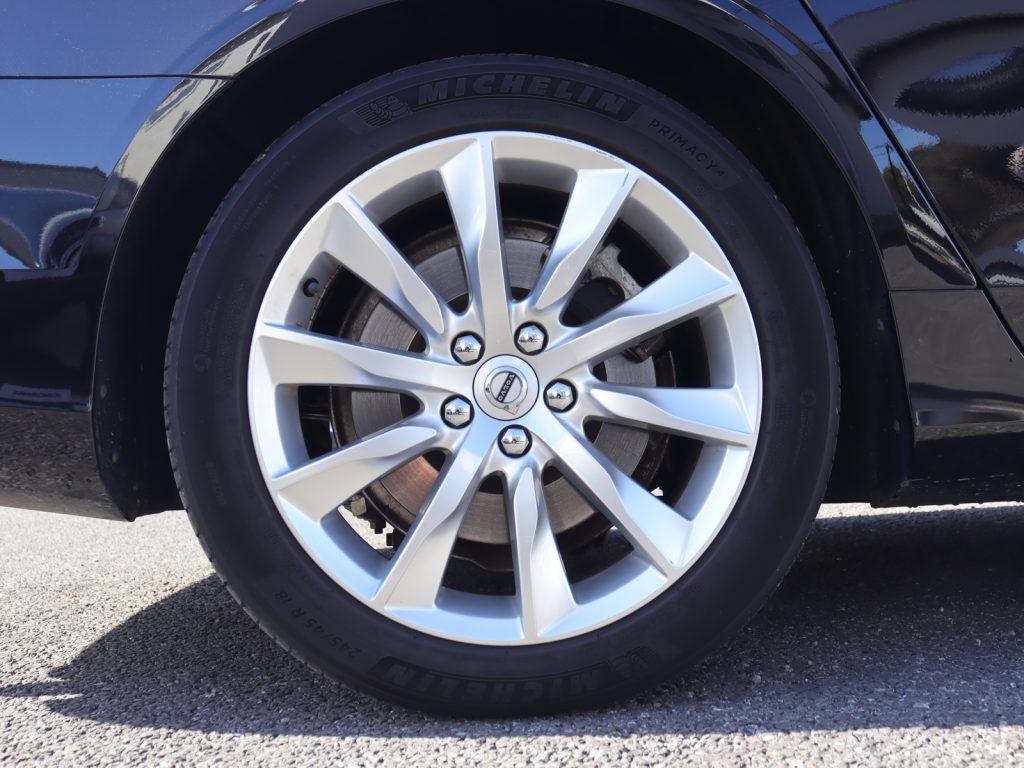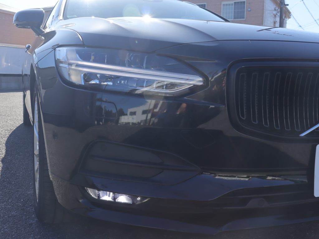 ボディカラーは重厚感と精悍さを兼ね備えたオニキスブラックメタリックで、V90の伸びやかで端正なエステートフォルムを引き締めて見せています。