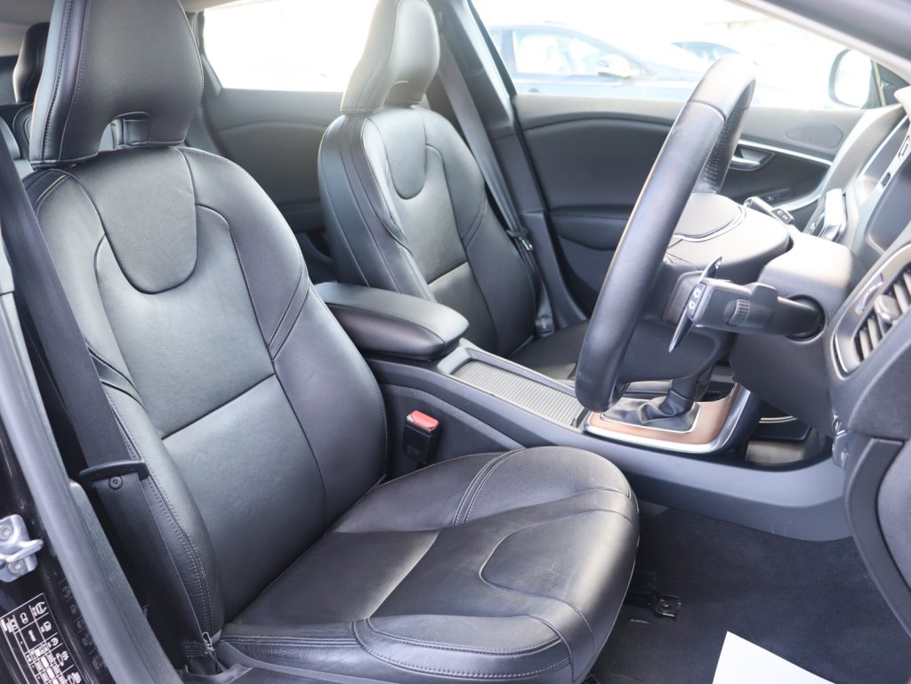 インテリアにはオフブラック本革シートを採用し、シートヒーターやパワーシートを装備。モダンウッドパネルが北欧らしい落ち着いた雰囲気を演出し、上質な室内空間に仕上げられています。