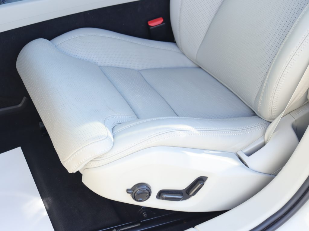 ワンオーナー車として丁寧に扱われてきた一台で、インテリアにはブロンド/パーフォレーテッドファインナッパレザーを採用。マッサージ機能に加え、シートヒーターやシートベンチレーションを備え、四季を通して快適なドライブをお楽しみいただけます。リアエアコンも装備されており、後席の乗員にも快適な空間を提供します。