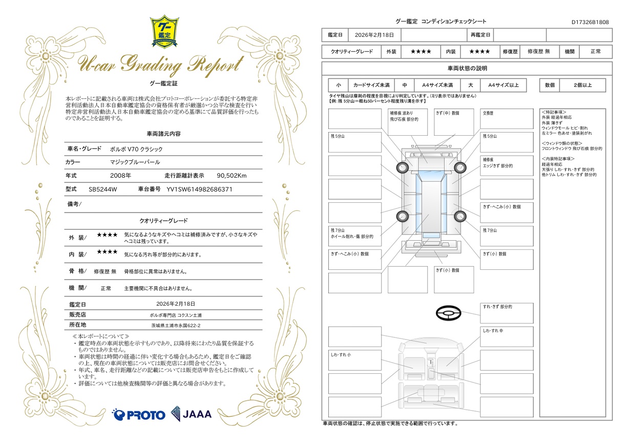 2008年式のボルボ V70 クラシック。ボディカラーはマジックブルーパールが入庫しました。