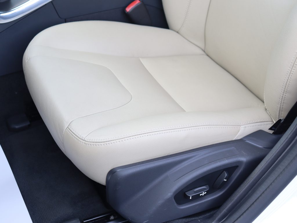 インテリアにはソフトベージュの本革シートを採用。明るく開放感のある色調が、北欧らしい温かみと清潔感に満ちた車内空間を演出します。