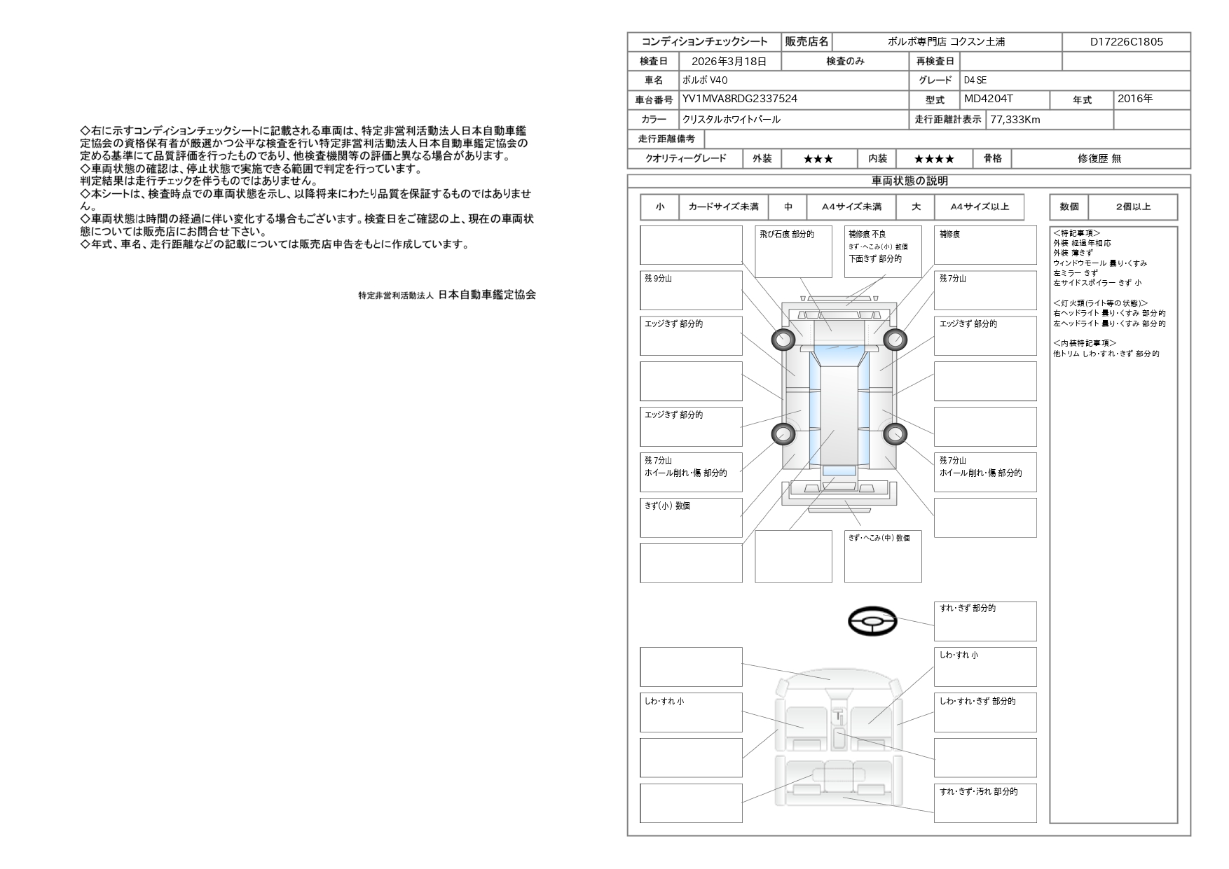 発行いたします。ボルボに精通した整備士が、ボルボ専用のテスター機を保有する自社整備工場にて作業を行います。国土交通省認可の指定整備工場ならびに認証整備工場を所有。お客さまがお車を安心してお乗りいただけるよう一台一台丁寧に整備しております。