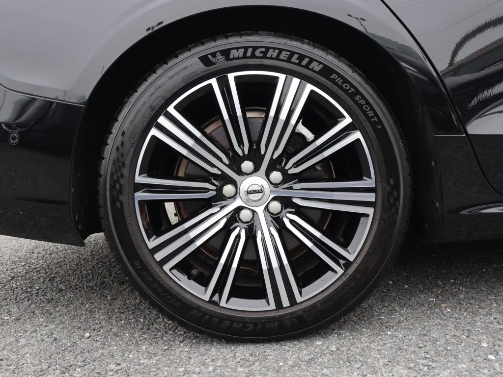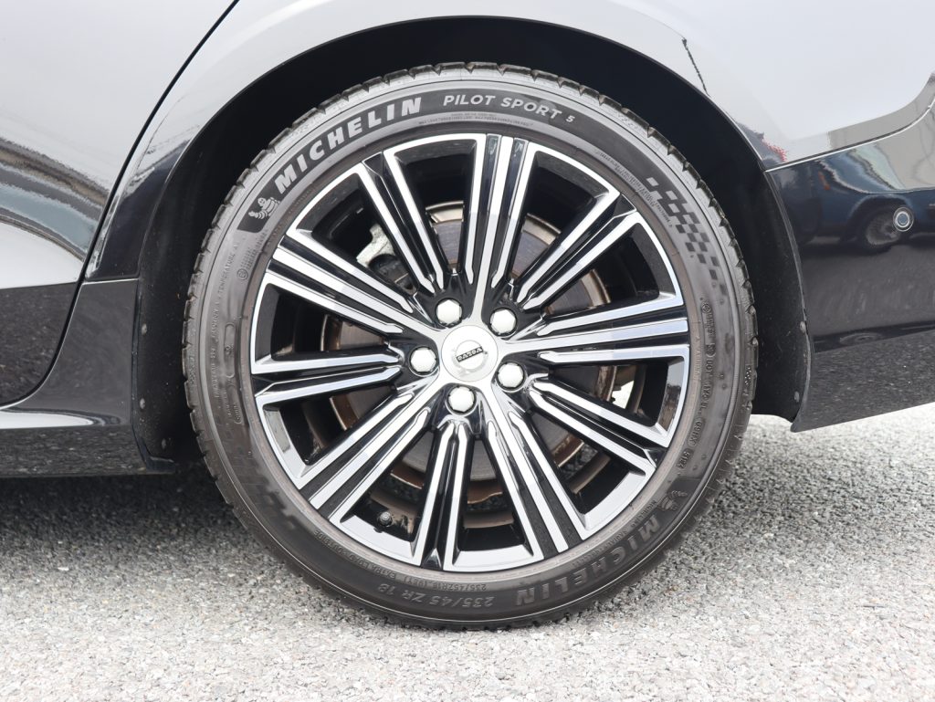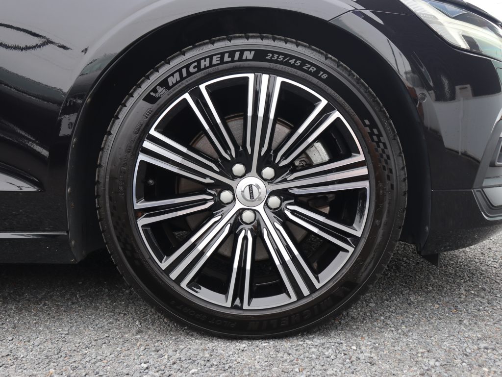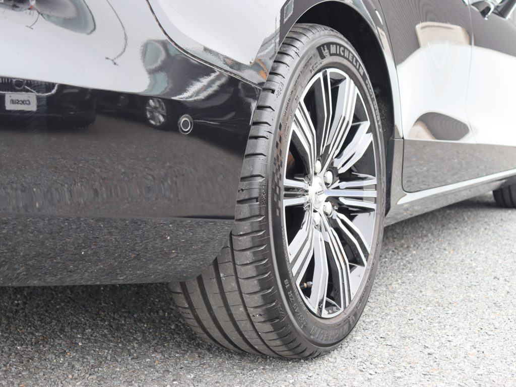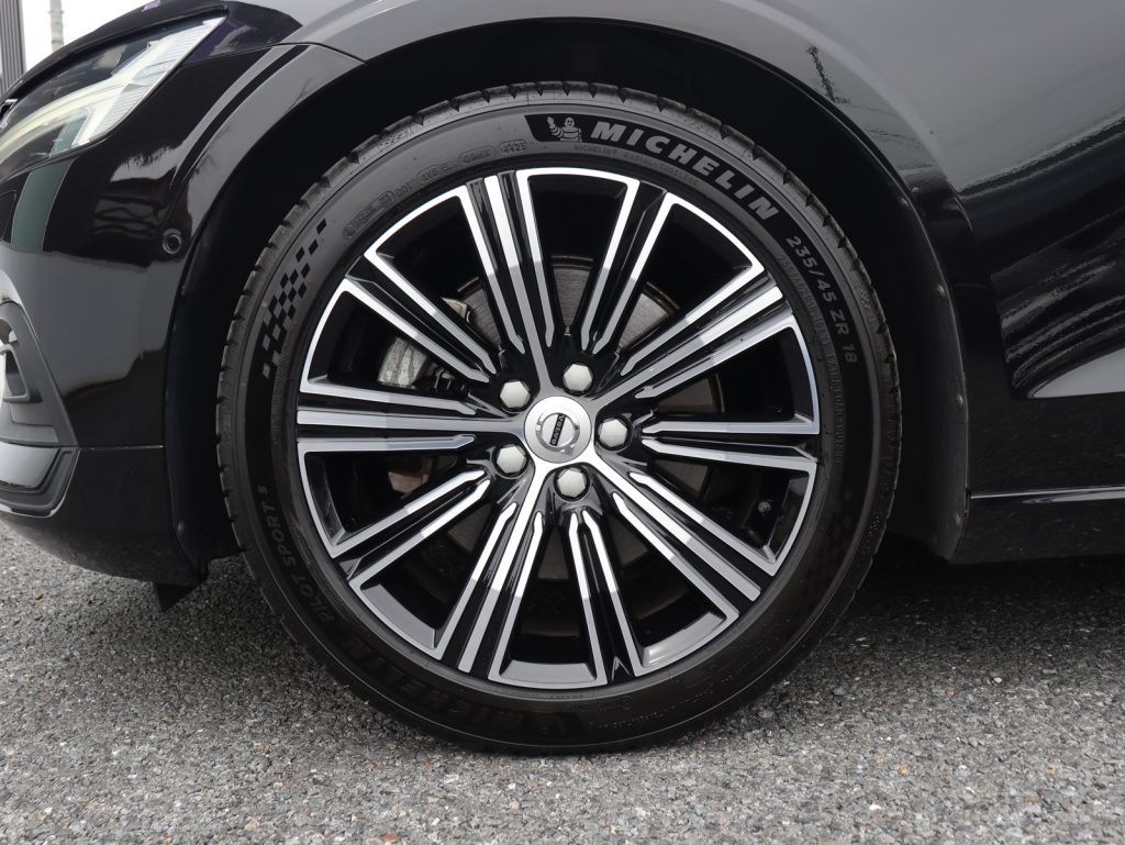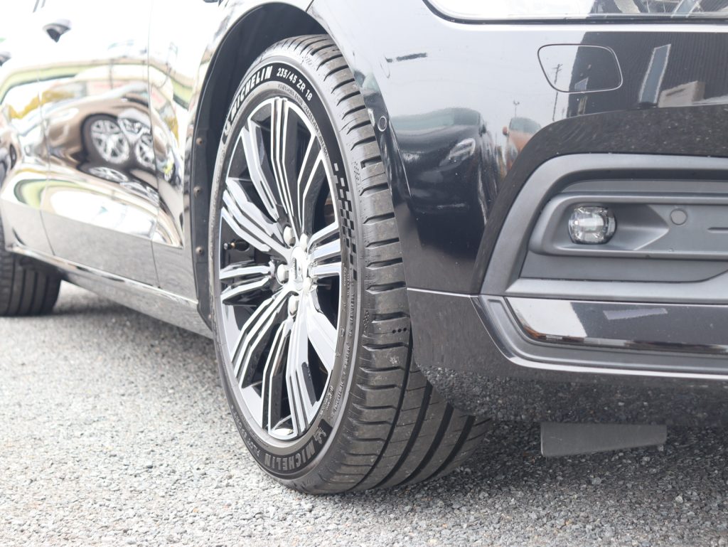 艶やかな漆黒の輝きが、V60の端正なフォルムをより精悍に、そしてエレガントに引き立てる一台です。足元には18インチアルミホイールを装備し、落ち着きの中にも程よい力強さを感じさせる佇まいとなっています。