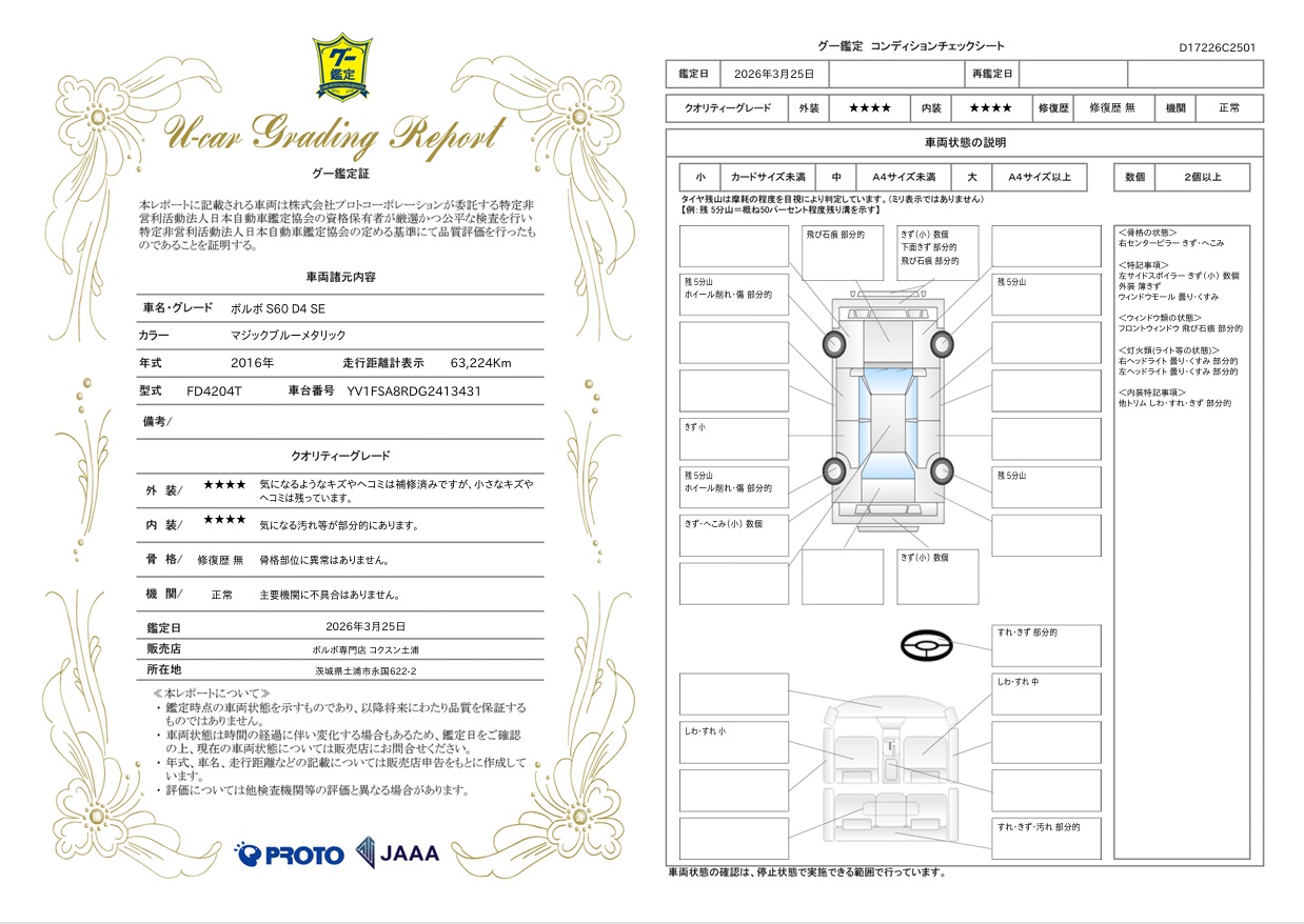 ボルボ S60 D4 SEが入庫しました。ボディカラーはマジックブルーメタリックとなります。