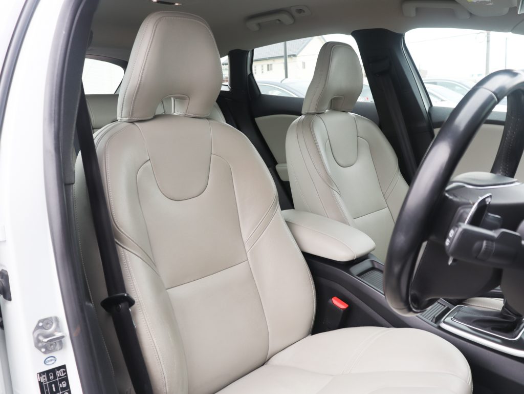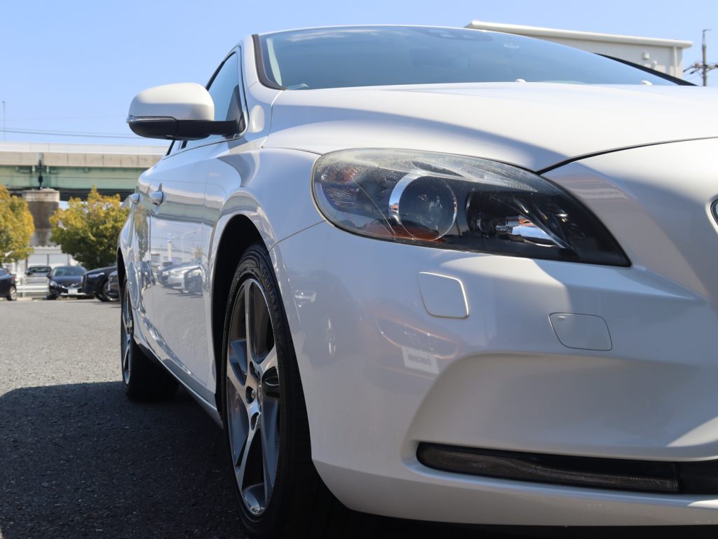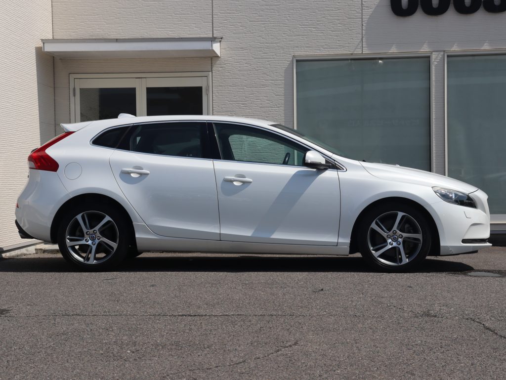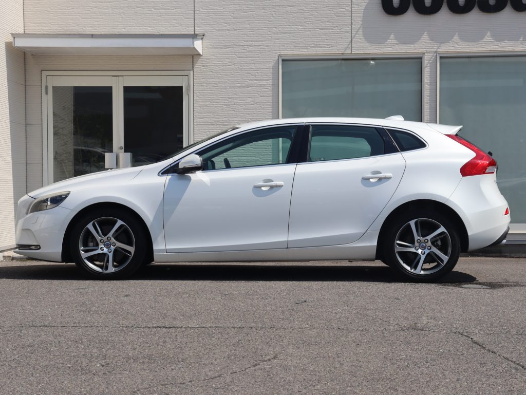 透明感のあるホワイトが、V40の流麗なフォルムと北欧らしいクリーンな印象を際立たせる一台です。