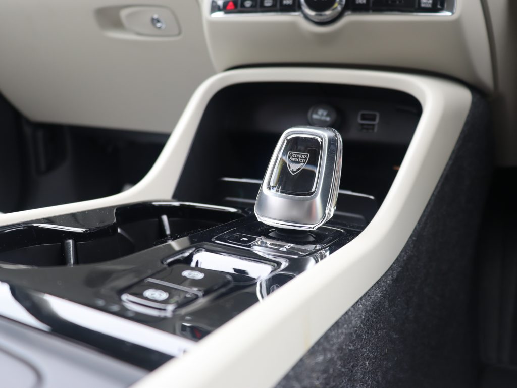インテリアには、明るく気品に満ちたブロンド本革シートを採用。スウェーデンの伝統が息づくオレフォス製クリスタルシフトノブが、北欧らしい温もりと上質さを添えています。