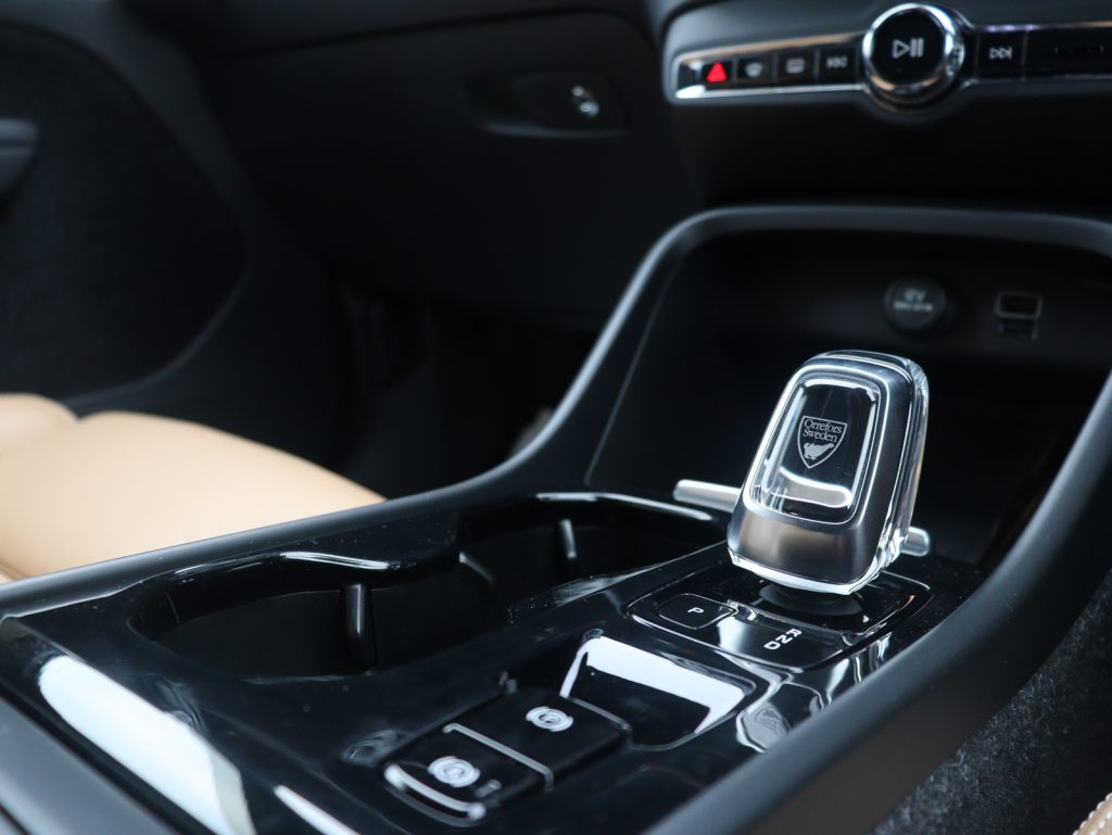 インテリアには温かみのあるアンバー本革シートを採用。スウェーデンの伝統が息づくオレフォス製クリスタルシフトノブが、上質な空間にさりげない輝きを添えています。