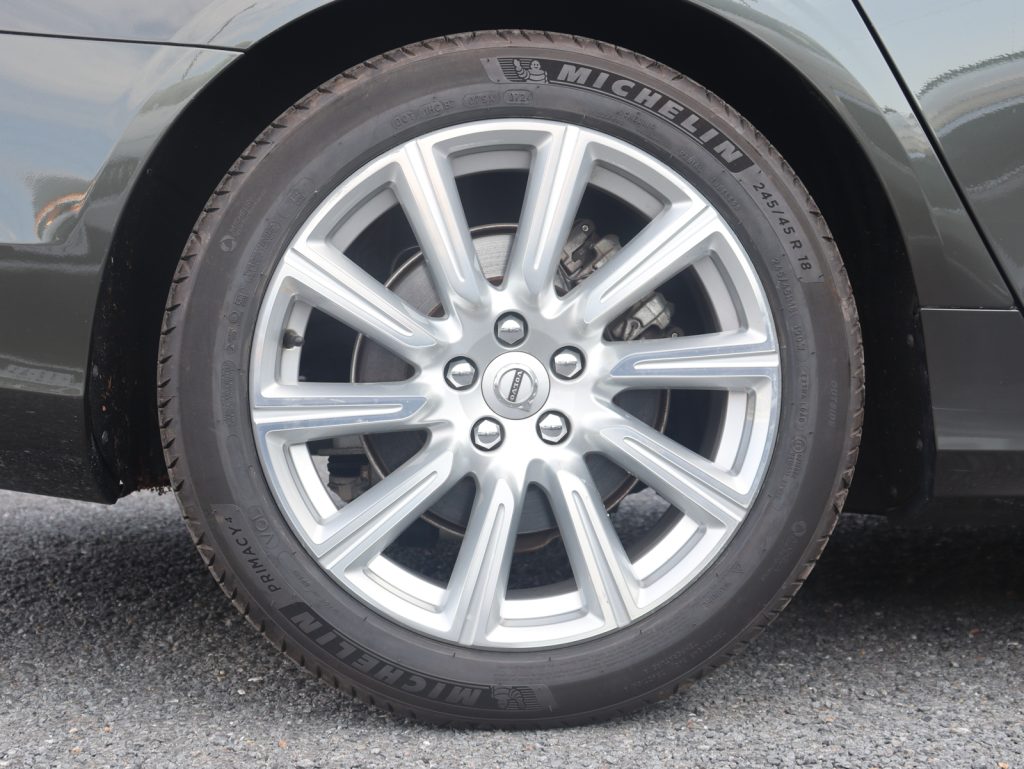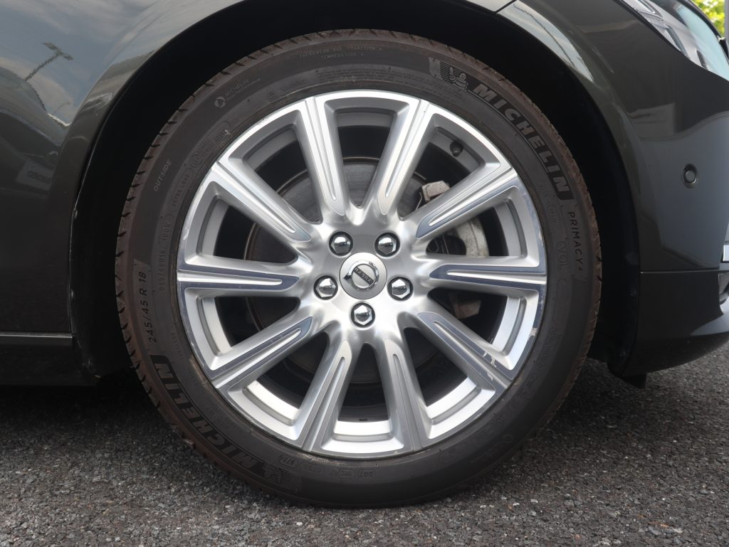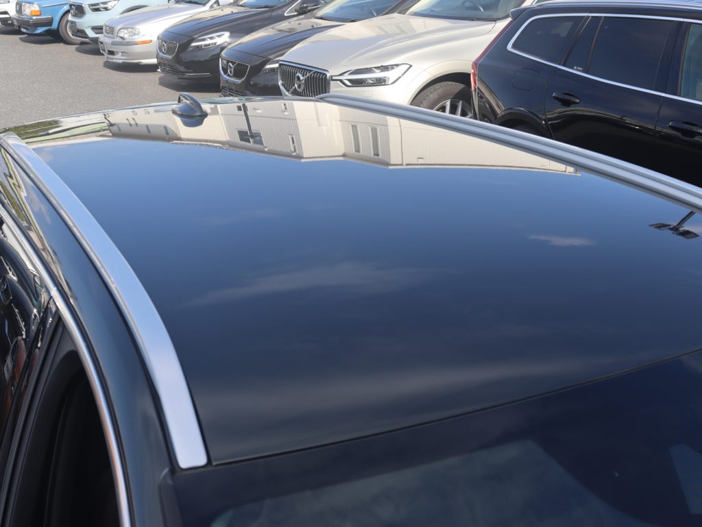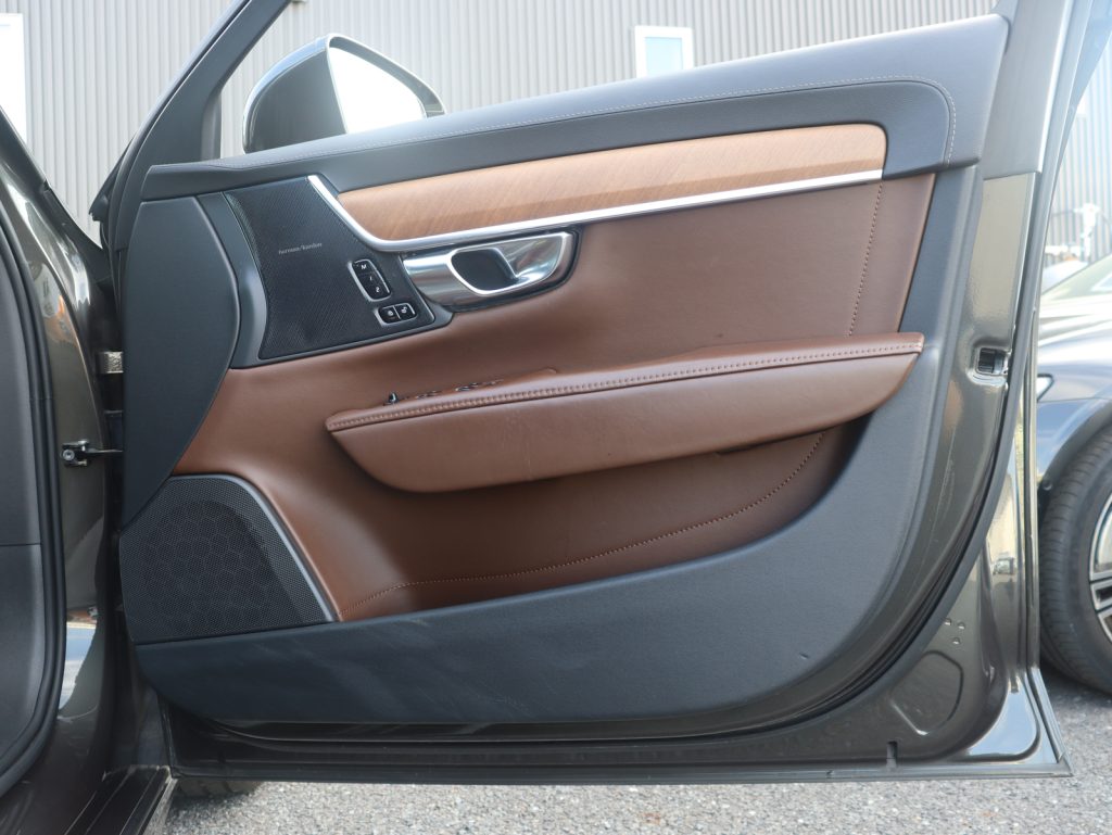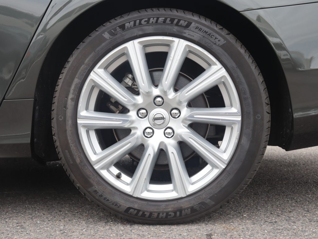 落ち着きのあるパイングレーメタリックが、V90の優雅で伸びやかなフォルムに調和し、フラッグシップモデルにふさわしい知的な佇まいを演出します。