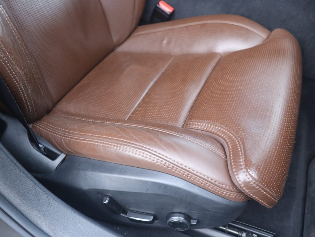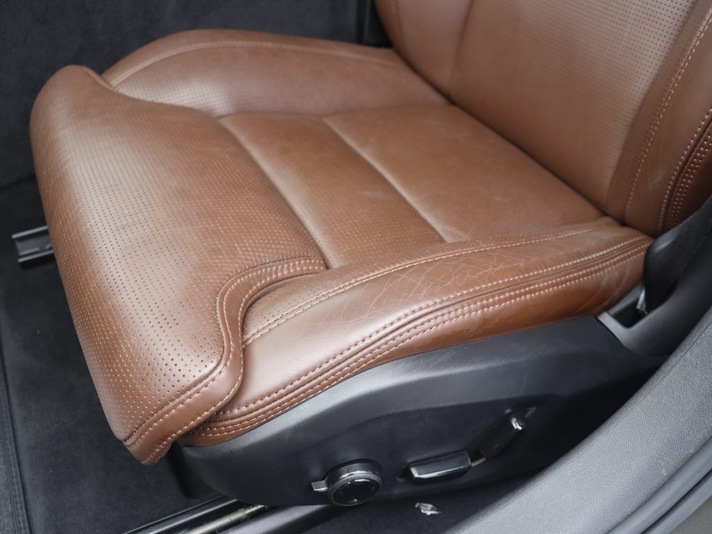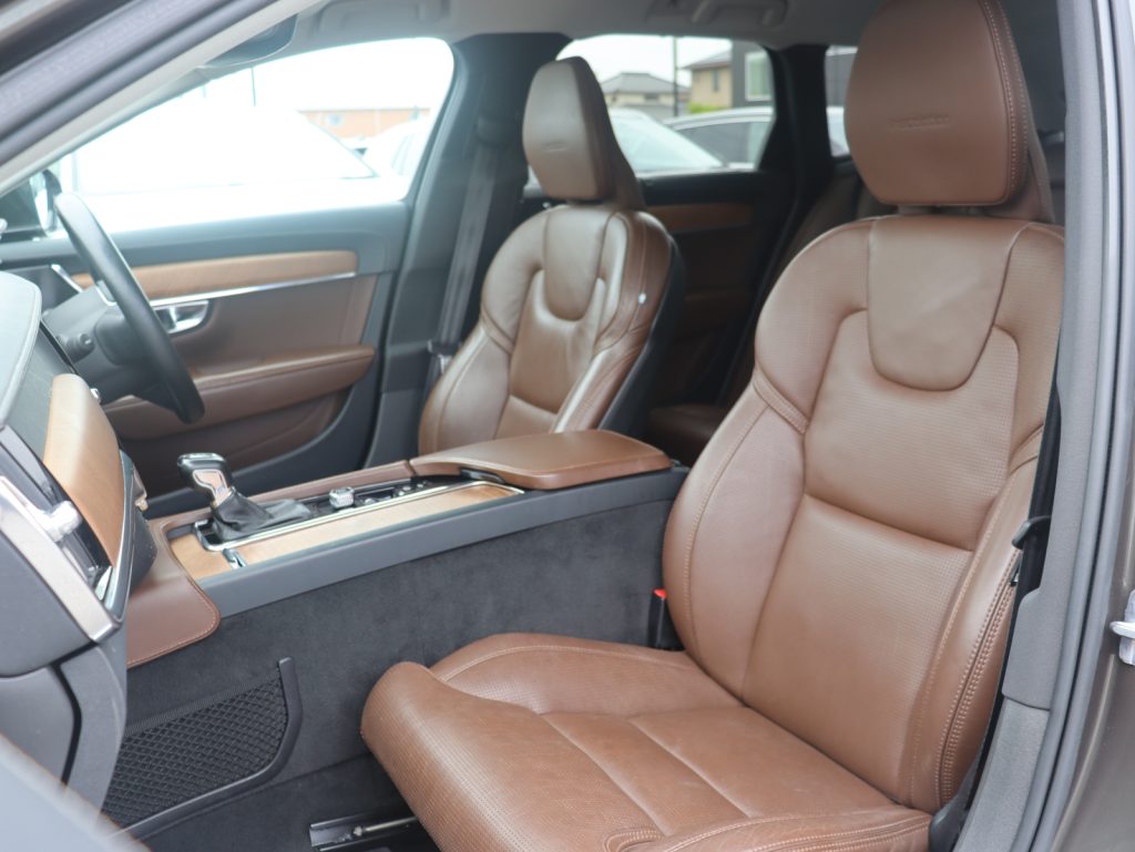 インテリアには、マルーンブラウンのパーフォレーテッドファインナッパレザーを採用。上質なレザーの質感と温かみのある色彩が、北欧のラウンジのような心地よい空間を作り出しています。