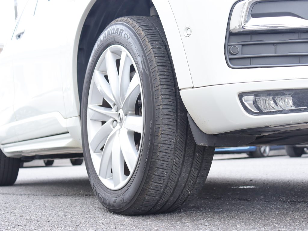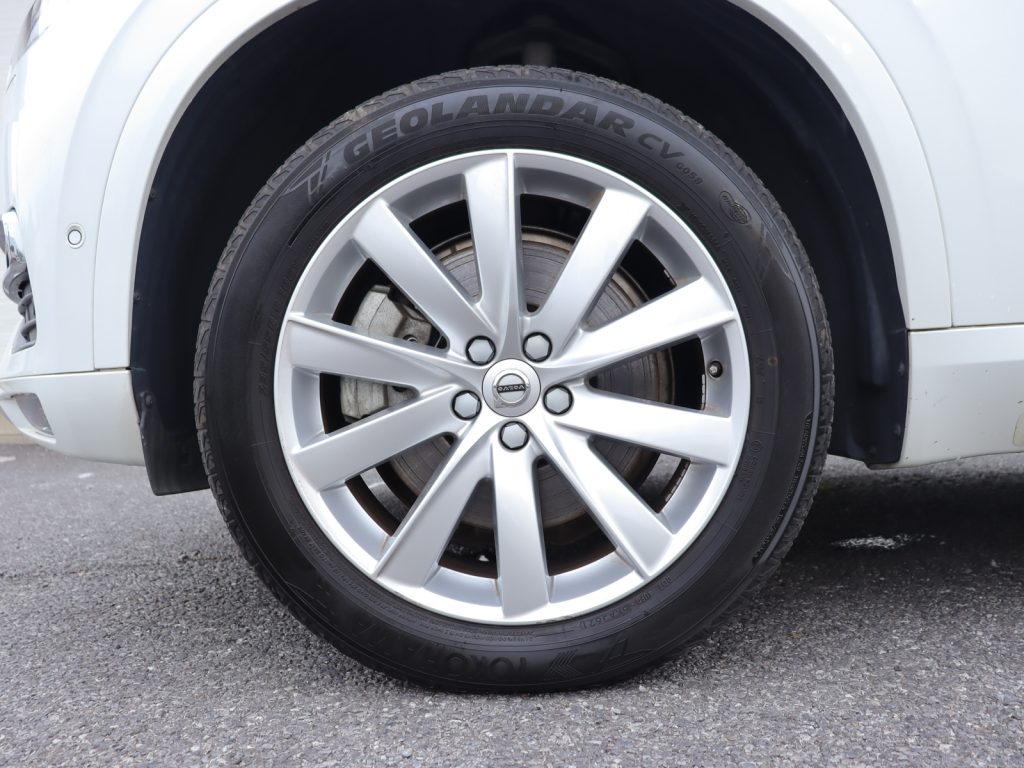 透明感のあるパールホワイトの輝きが、北欧らしい洗練された美しさとSUVとしての力強い存在感を際立たせる一台です。