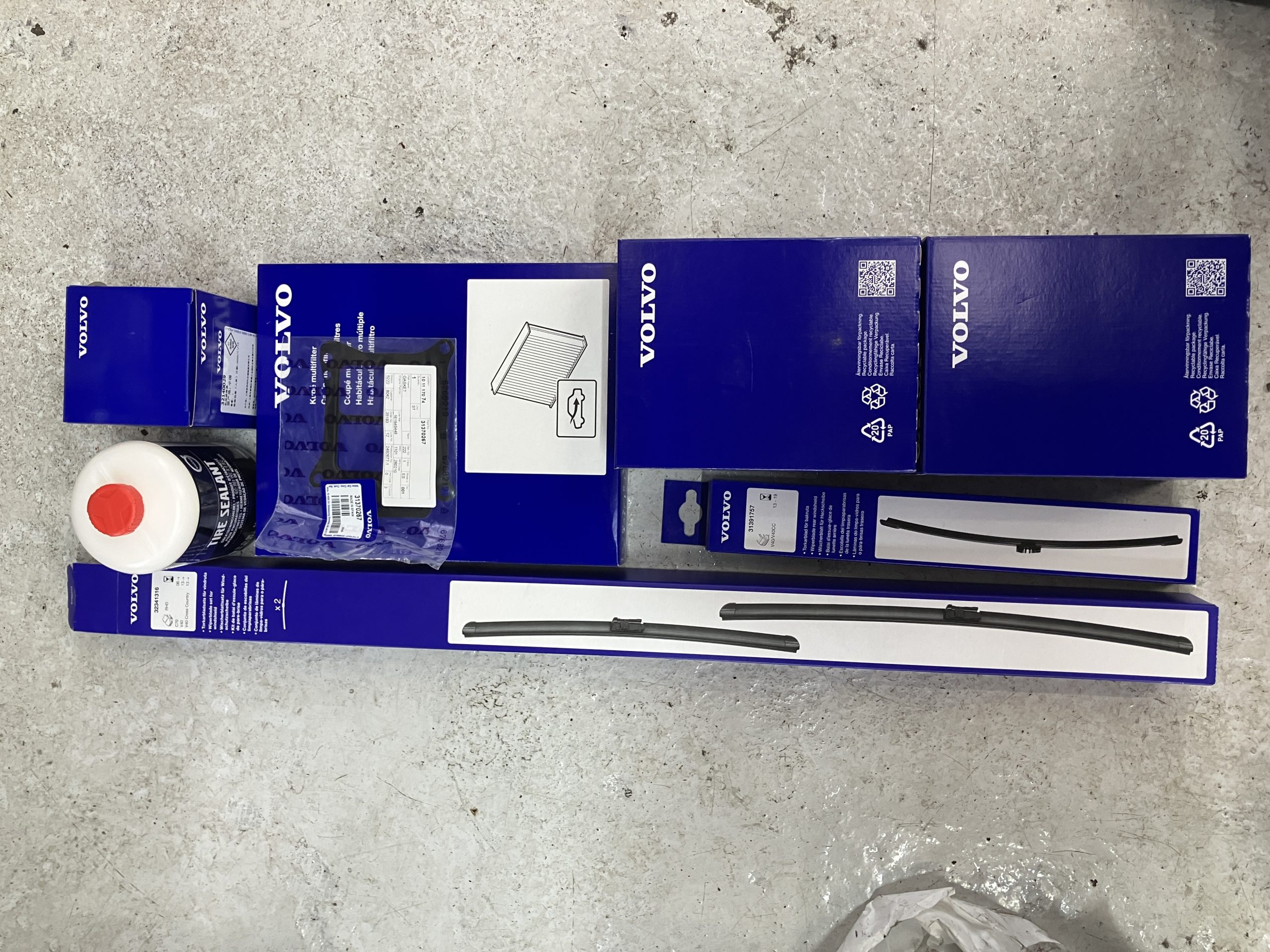エンジンオイル、オイルフィルター、ブレーキオイル、バッテリー、冷却水、フロントワイパー、リアワイパー、エアコンフィルター、パンク修理剤、ドレンパッキン、燃料キャップ、スタビリンク -