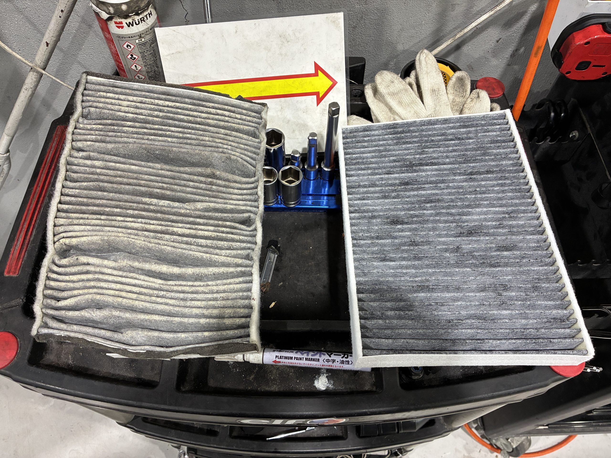 エンジンオイル、オイルフィルター、ブレーキオイル、バッテリー、冷却水、フロントワイパー、リアワイパー、エアコンフィルター、パンク修理剤、発煙筒、F左ドライブシャフトブーツ、サブバッテリー、タペットカバーパッキン、フューエルパイプ -